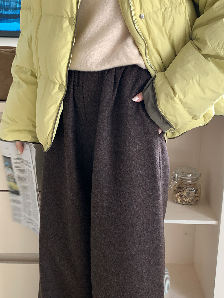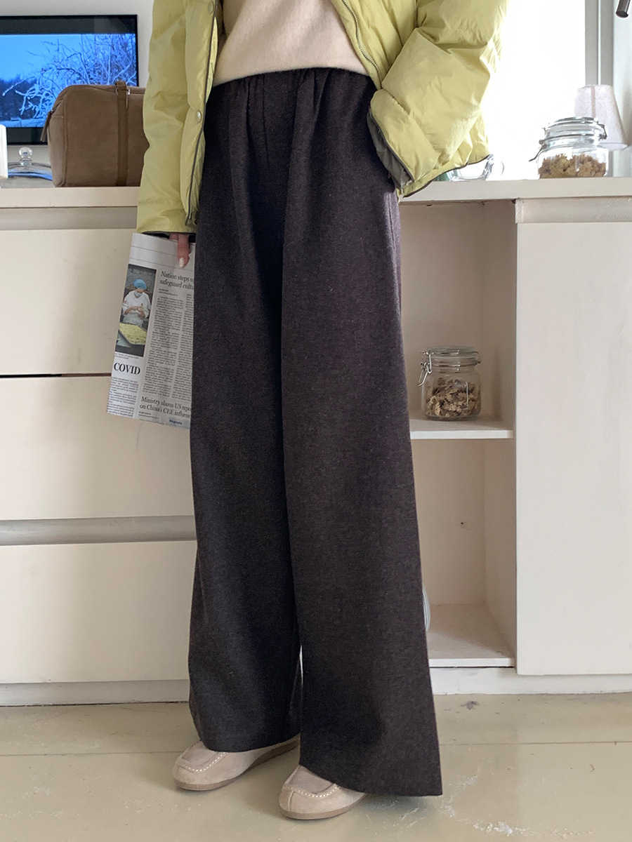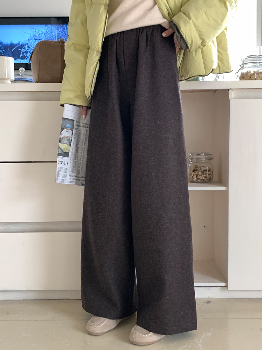 Главная страница > Шерстяные брюки-палаццо для женщин, новинка зимы 2025, корейский стиль, прямые шерстяные брюки с высокой талией, утолщенные серые повседневные брюки.
