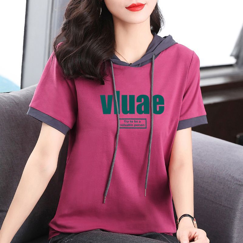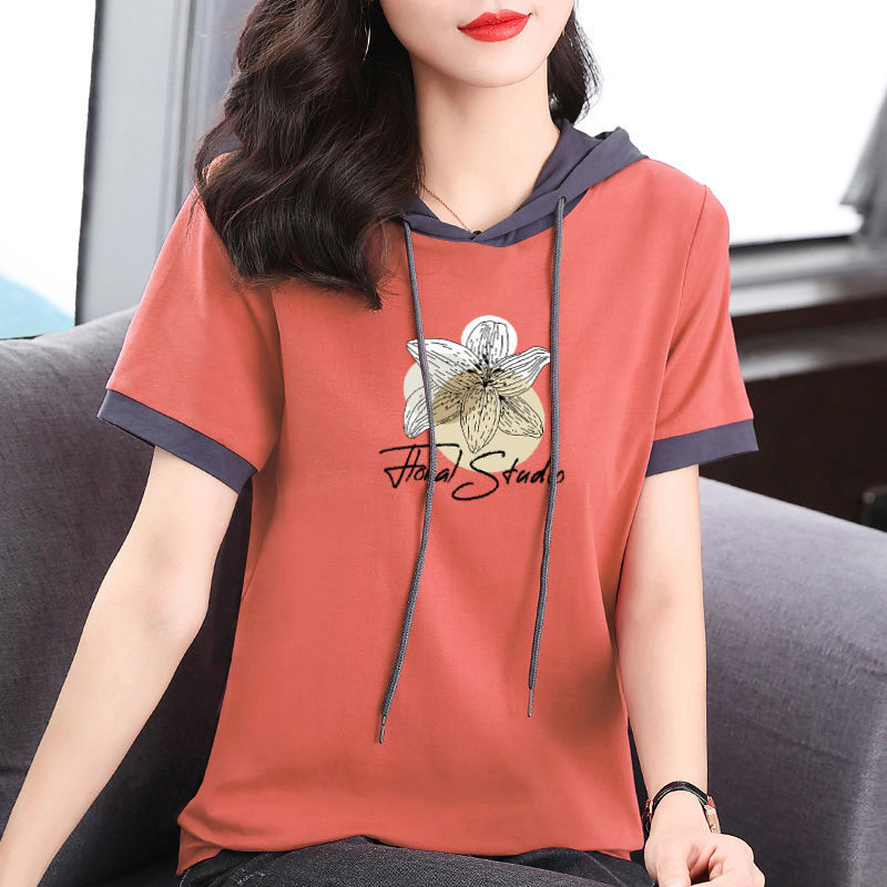Главная страница > 100% хлопчатобумажная футболка с капюшоном Женская рубашка с короткими рукавами летом 2025 года