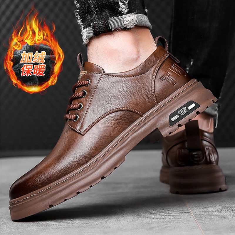 Главная страница > Мужские повседневные кожаные туфли с одинарной хлопковой подкладкой, зимние теплые ретро-туфли в стиле рабочей одежды на шнуровке, модные, с мягкой подошвой, удобные мужские кожаные туфли.