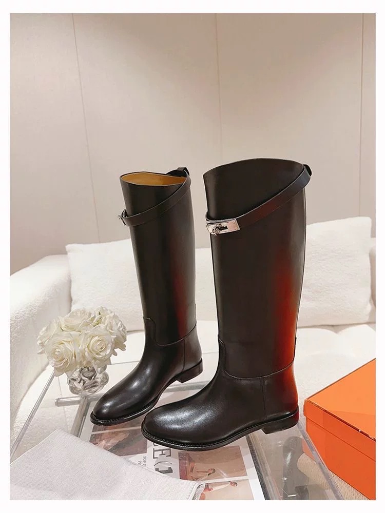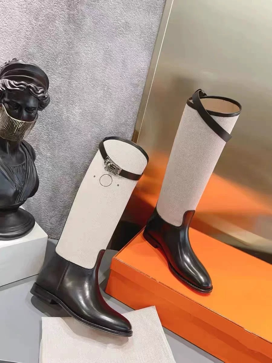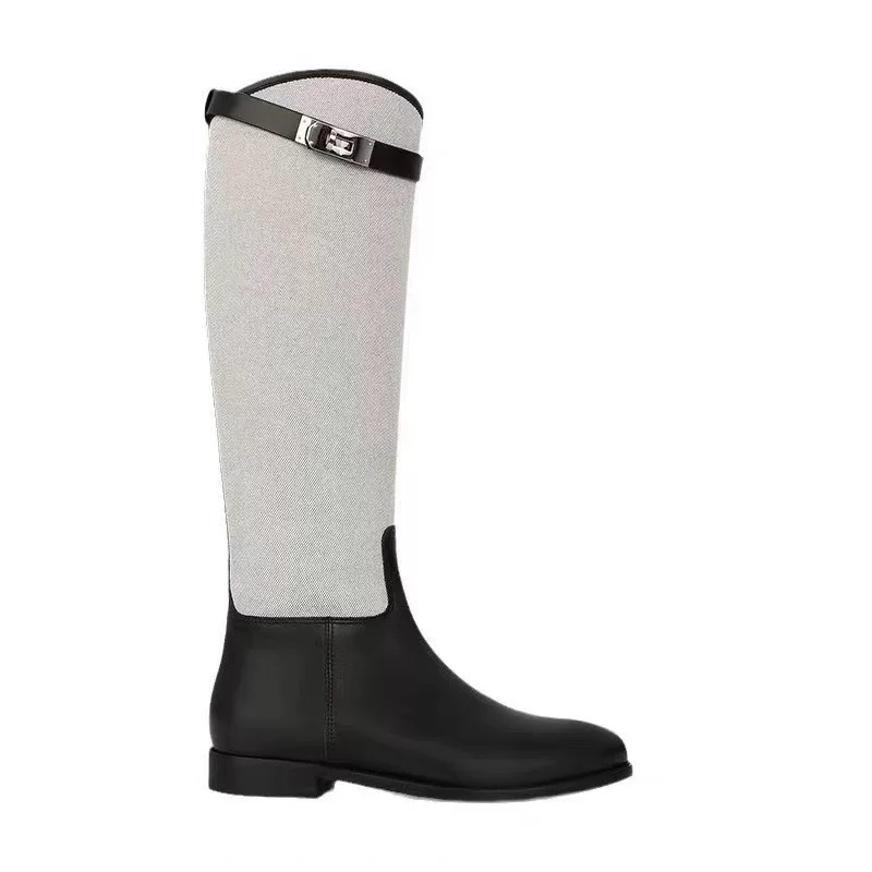 Женские высокие сапоги 2025 года, новая модель, бренд H, натуральная кожа, черно-белые, в стиле пэчворк, с диагональной пряжкой, сапоги выше колена для женщин