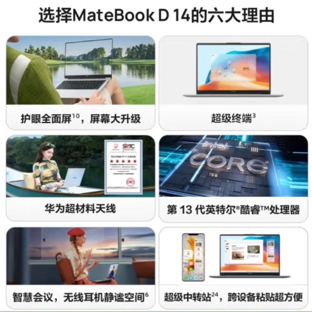 Главная страница > Ноутбук Huawei MateBook D14 2024 Компьютерная защита глаз Комплексный экран 13 поколений Core Студенческий офис