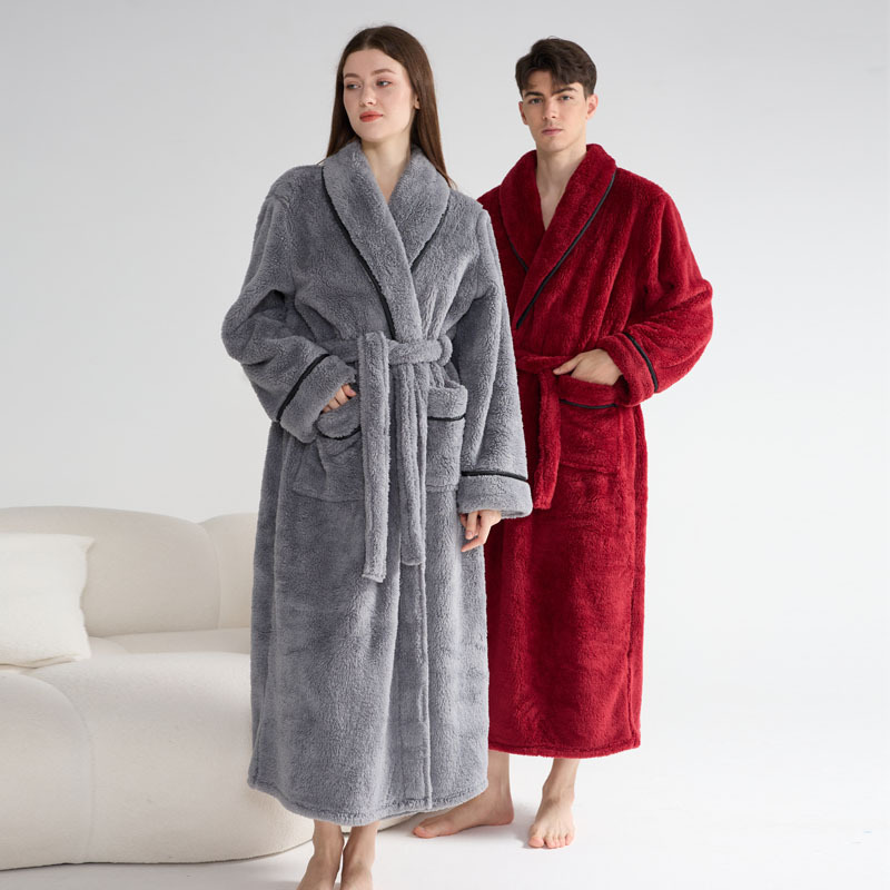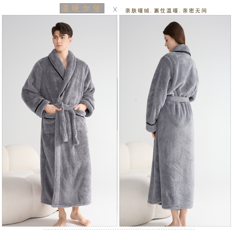 Главная страница > Осенне-зимняя утолщенная ночная рубашка для мужчин, большой размер и длинный стиль, парный халат, теплая бархатная теплая пижама, женский зимний халат.