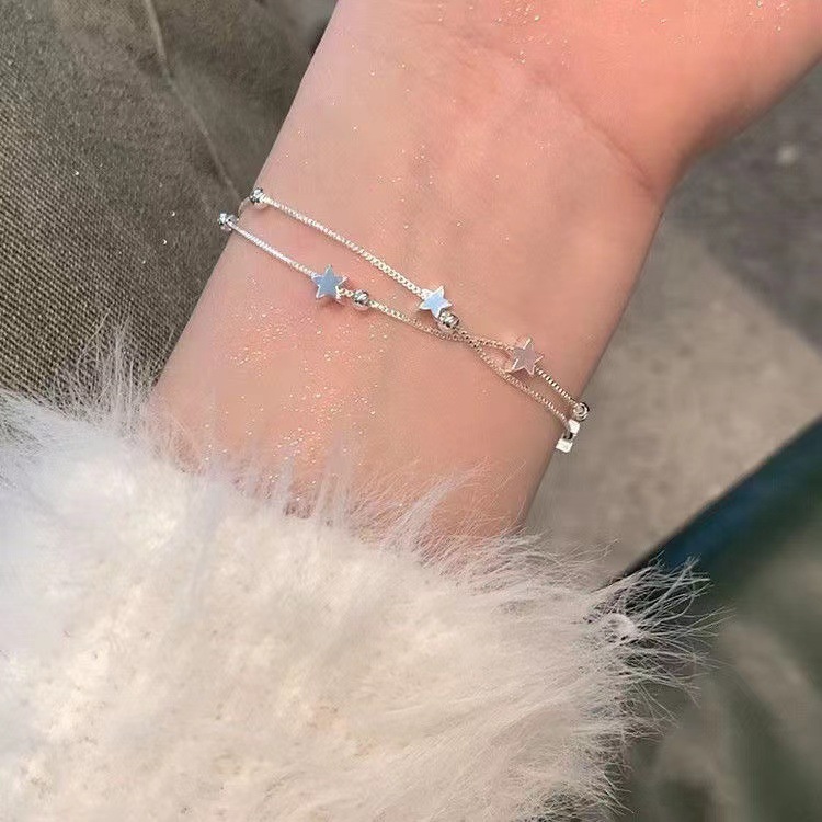 Главная страница > Покрытие 925 серебряный браслет маленькая звезда женская корейская модная двухслойная пятиконечная звезда ручной работы простой подруга сладкая маленькая свежая