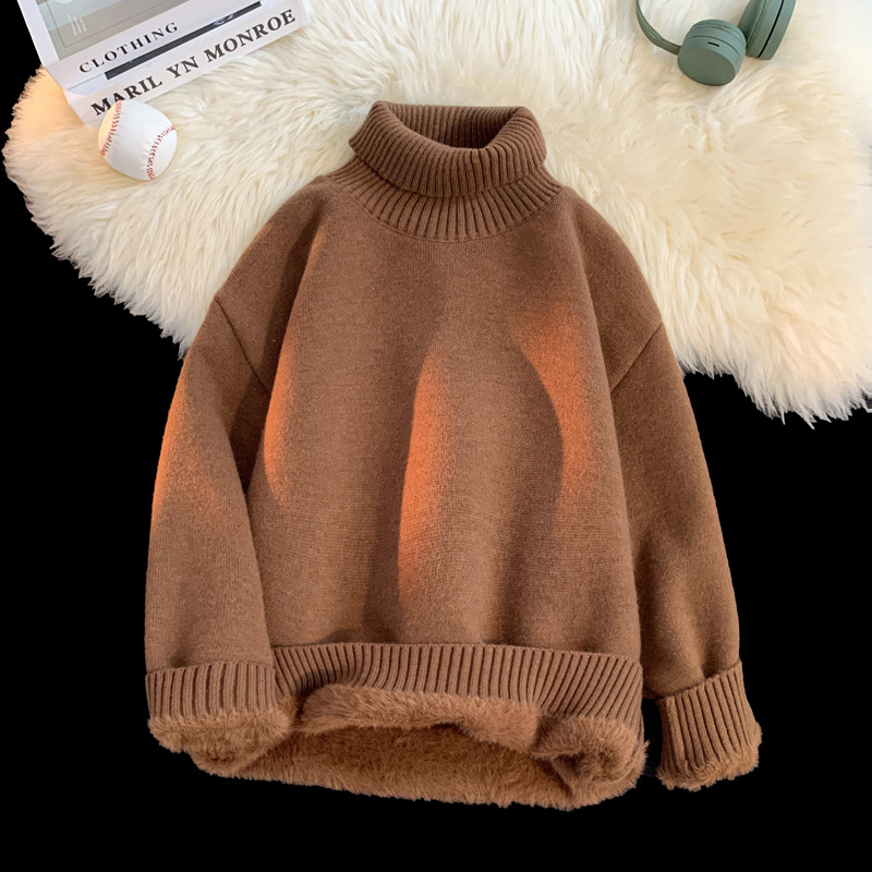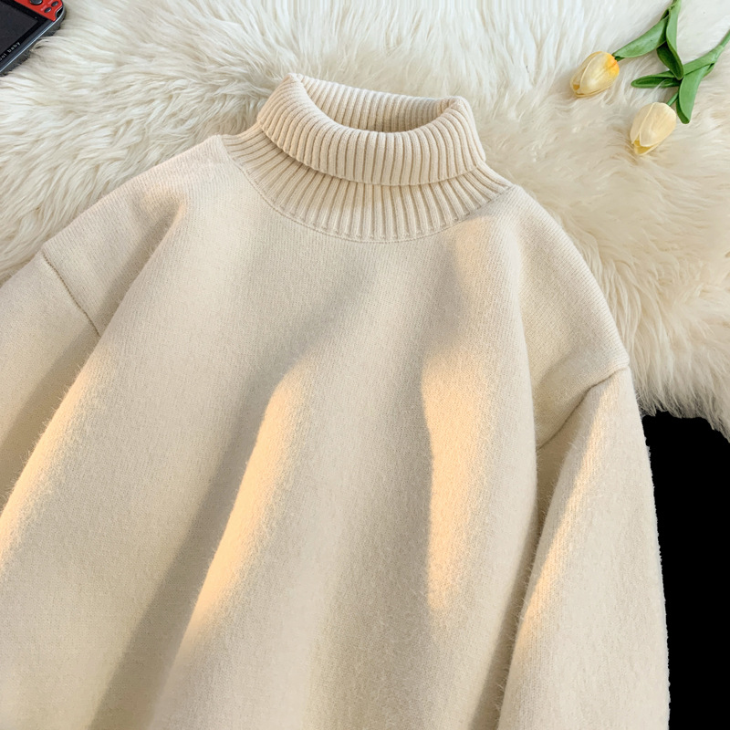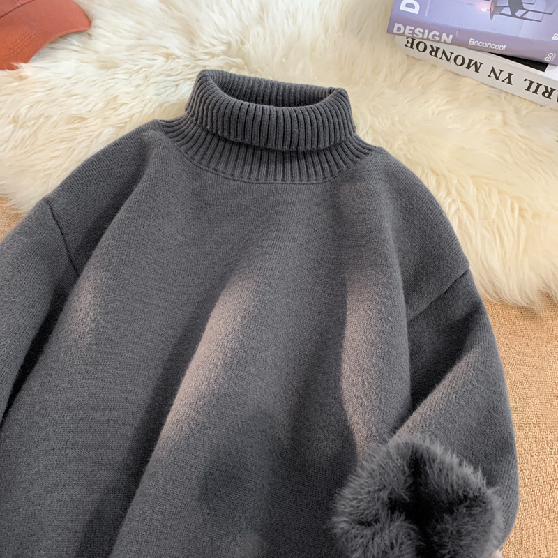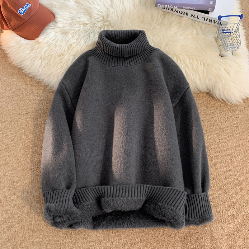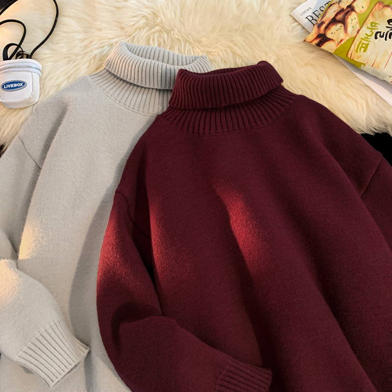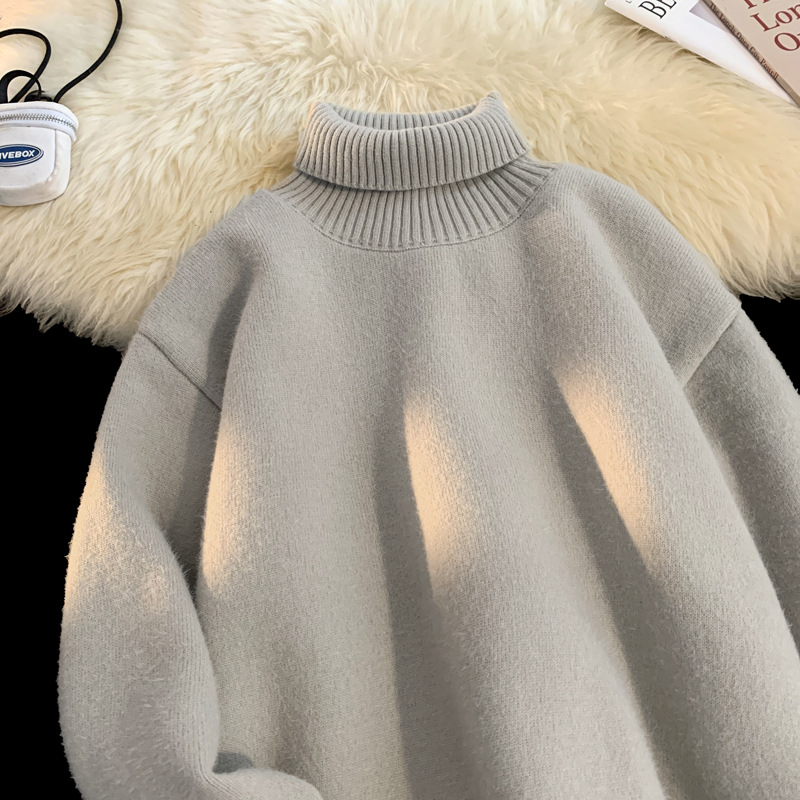 Главная страница > Мужской свитер с высоким воротом, серый, осенне-зимний, повседневный стиль, элитный, однотонный, свободный трикотажный пуловер.