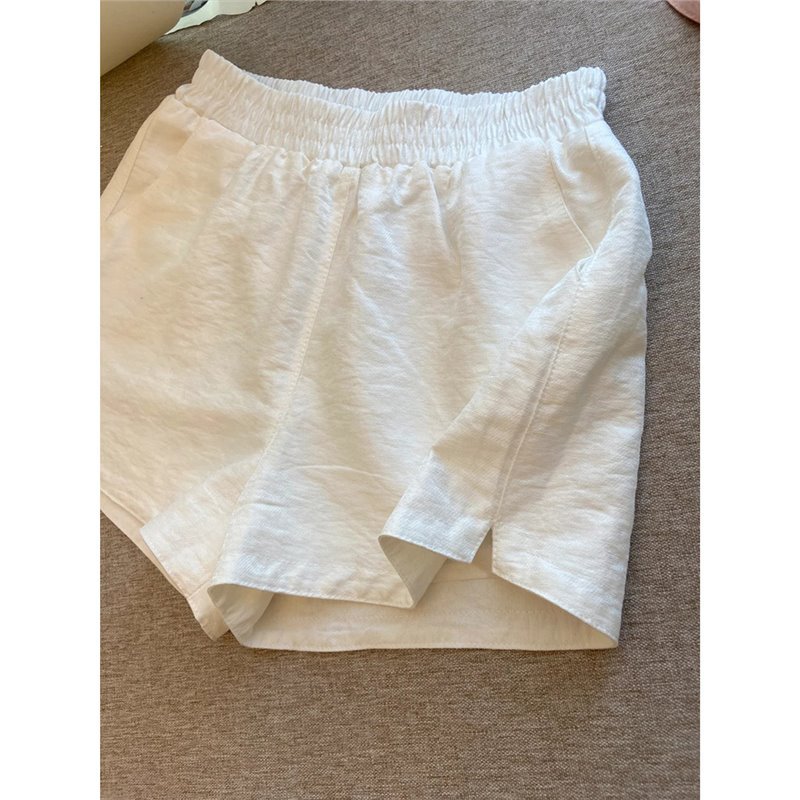 Главная страница > Белые дышащие шорты с разрезом для женщин, летние тонкие свободные миниатюрные повседневные спортивные брюки трапециевидной формы для похудения с широкими штанинами