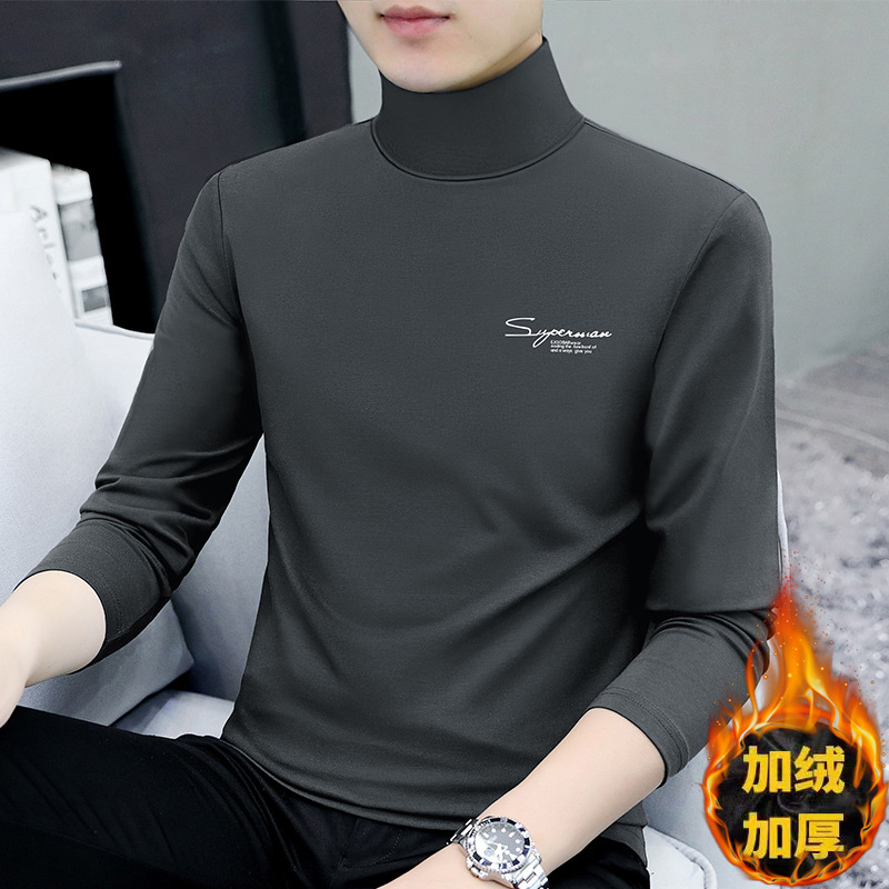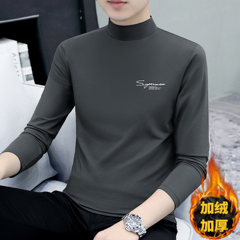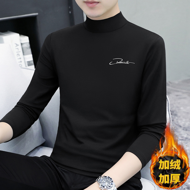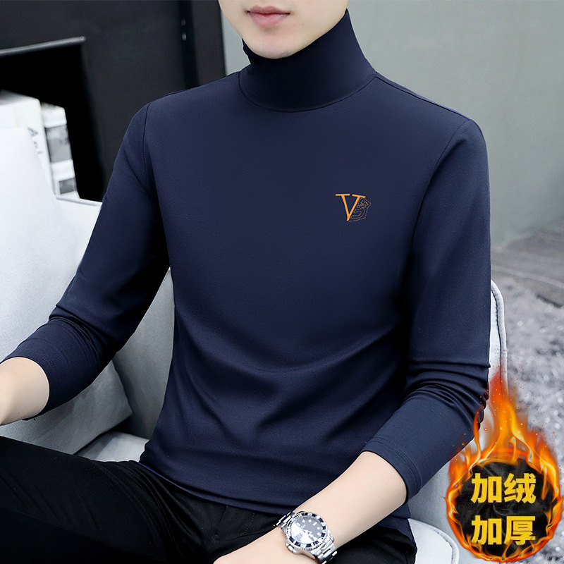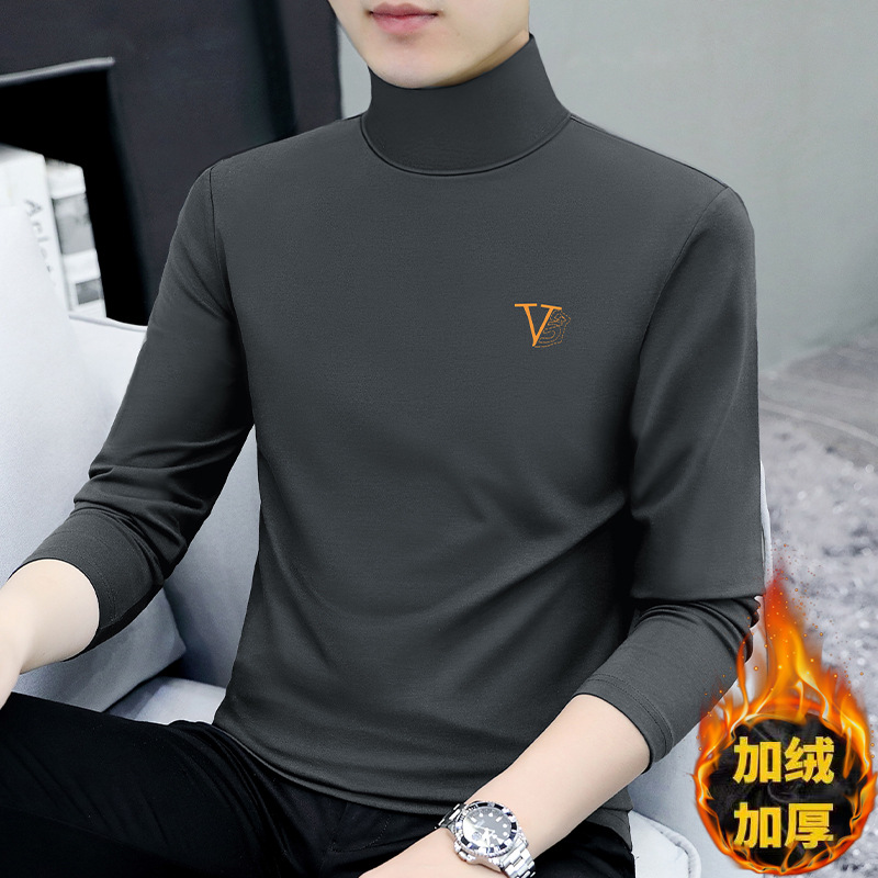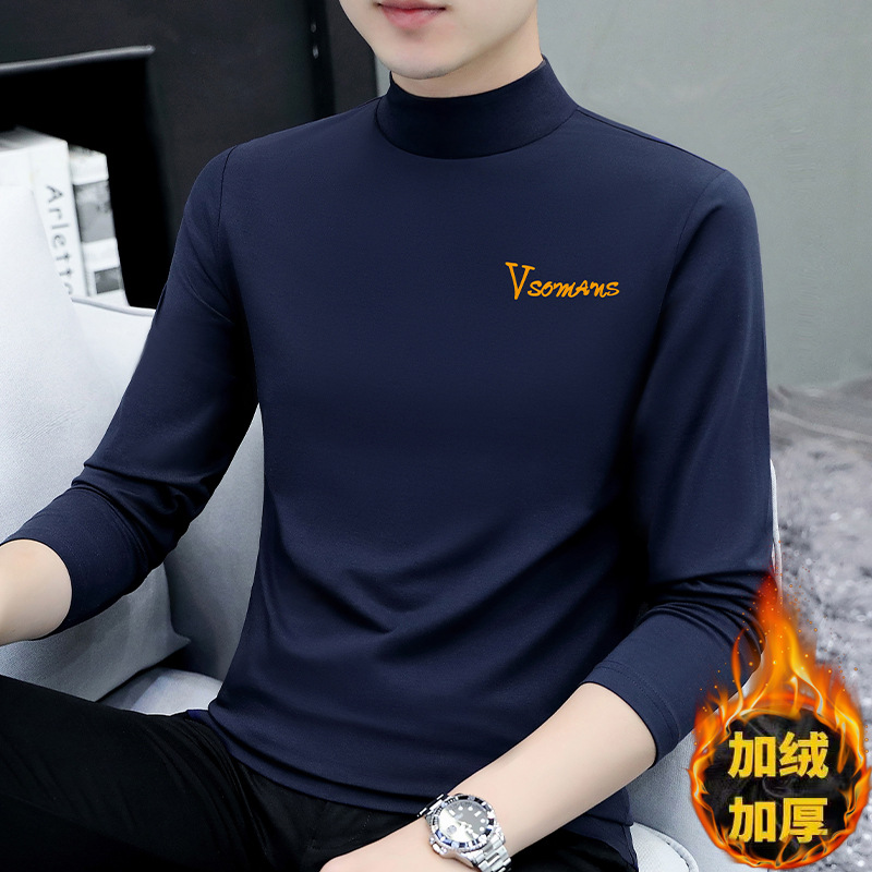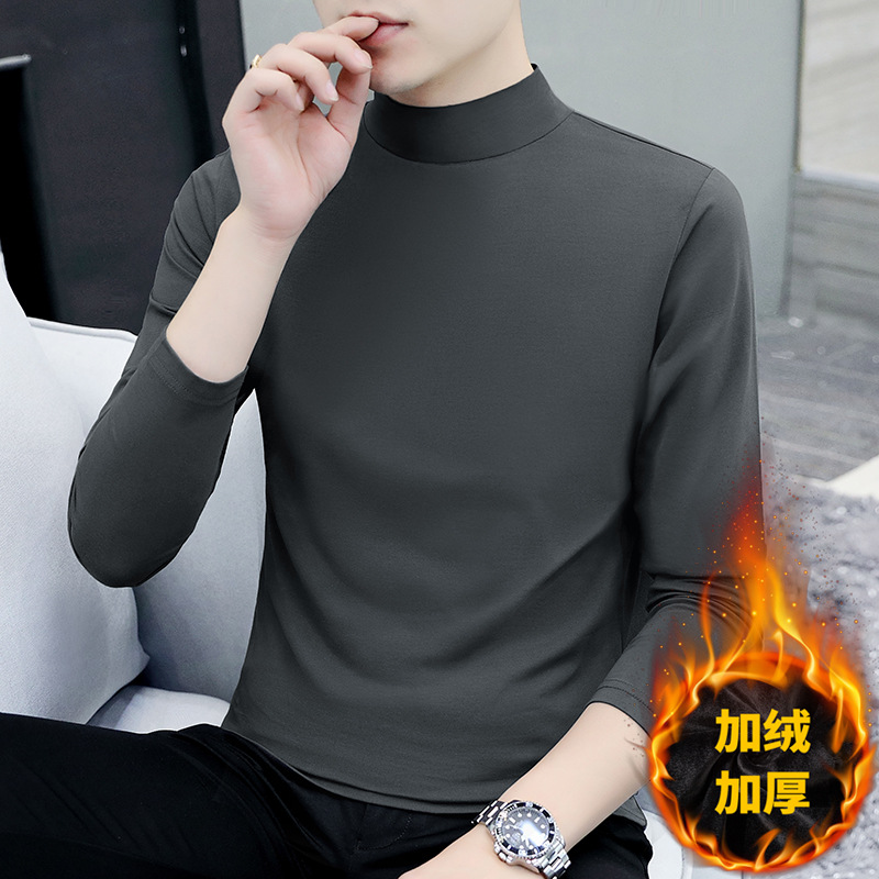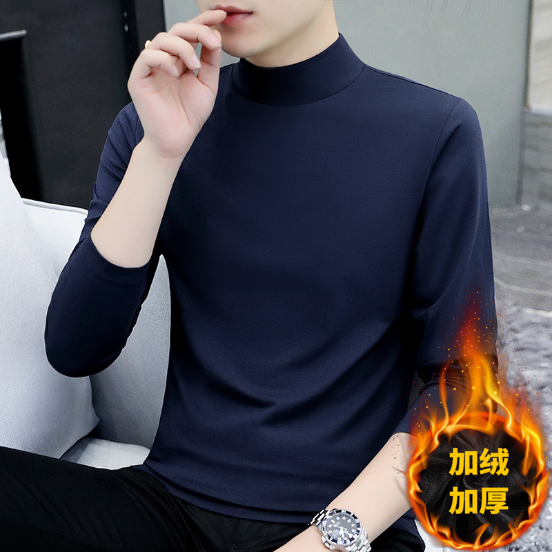 Главная страница > Мужская футболка с высоким воротником на утолщенной флисовой подкладке, эластичная Мужская рубашка с теплым дном, Повседневная внутренняя Мужская футболка, куртка, оптовая продажа