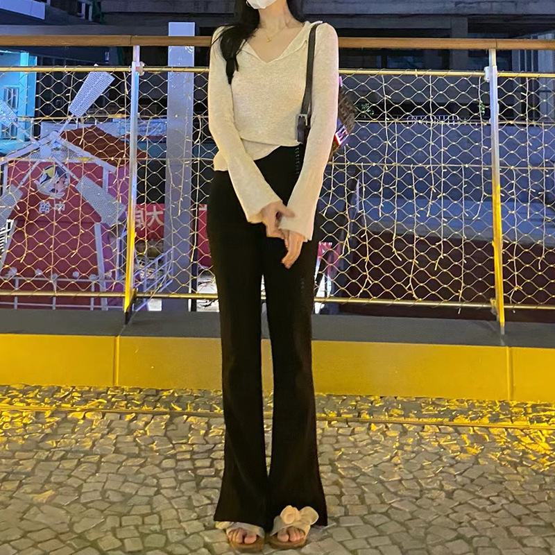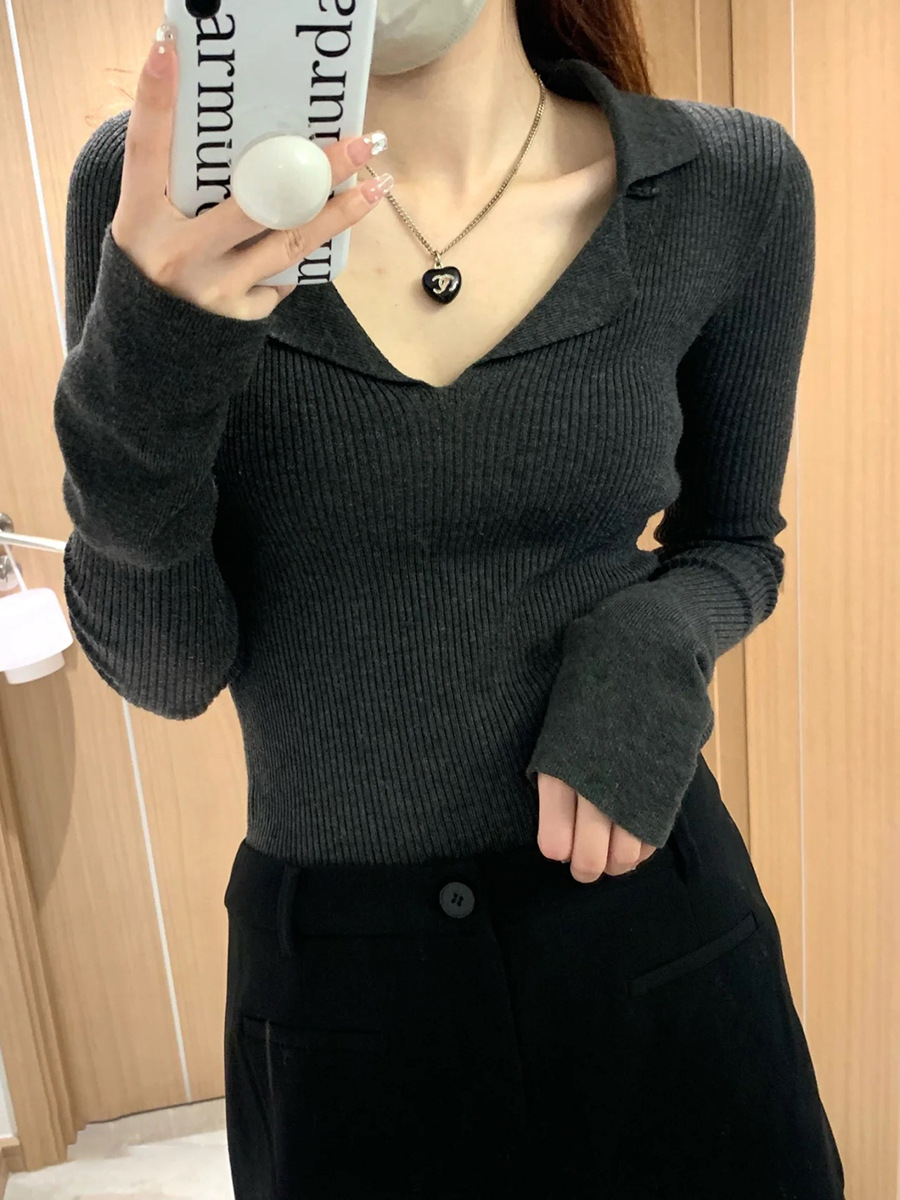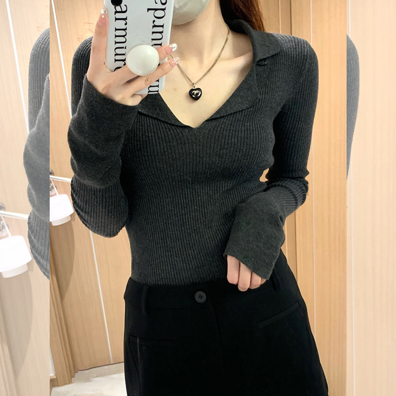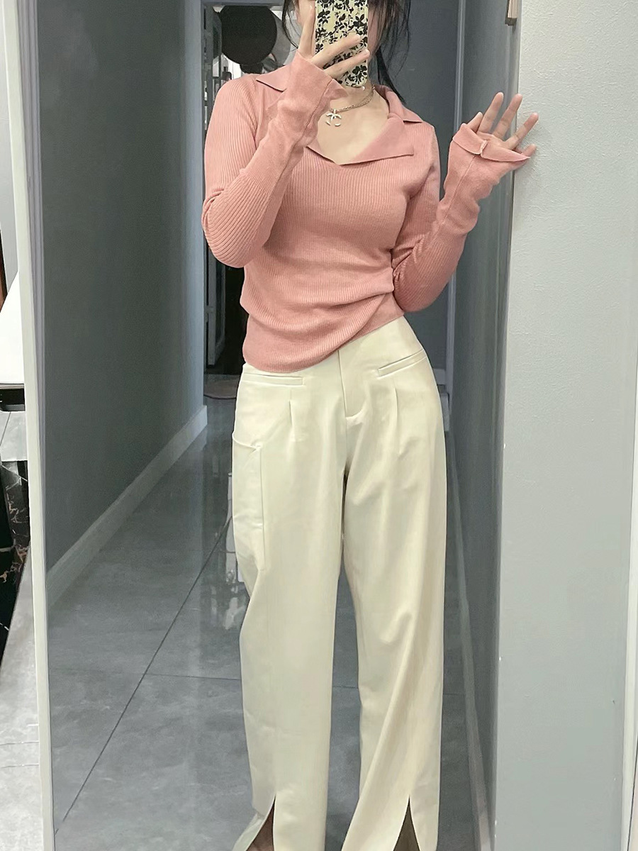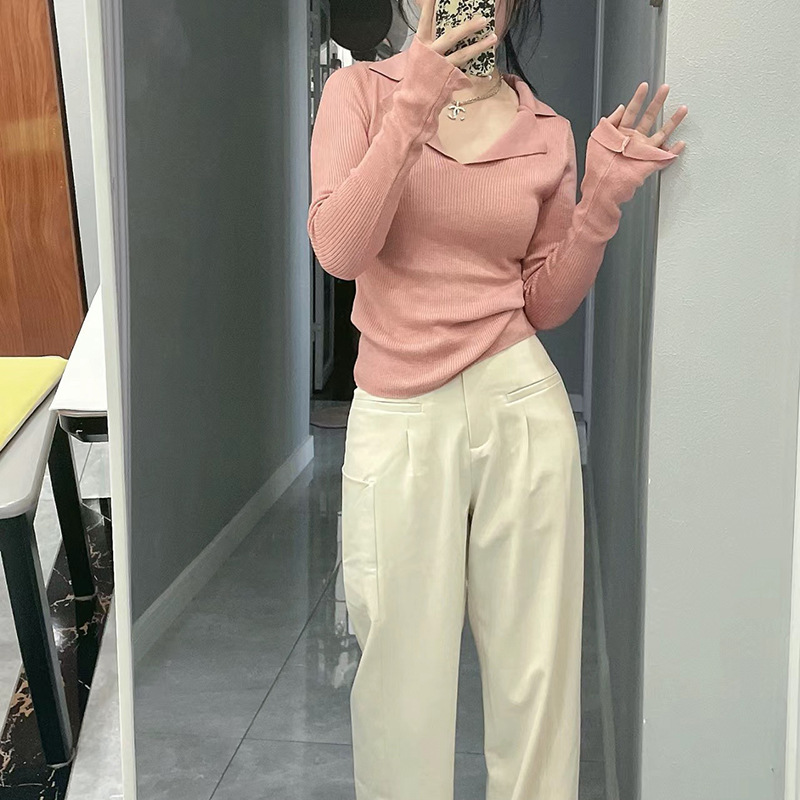 В наличии: Сексуальный и милый трикотажный свитер с воротником-стойкой для женщин, тонкий дизайн для ранней осени, стильный шерстяной базовый свитер.