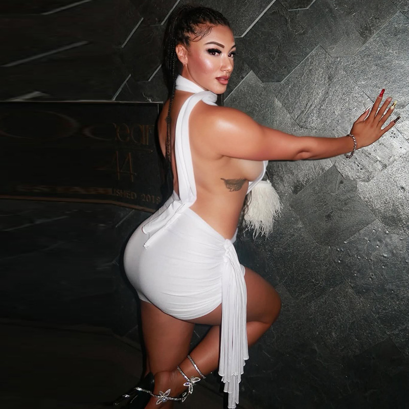Женское однотонное облегающее платье в европейском и американском стиле в стиле уличной моды с открытой спиной, ремнями и асимметричным дизайном со складками.