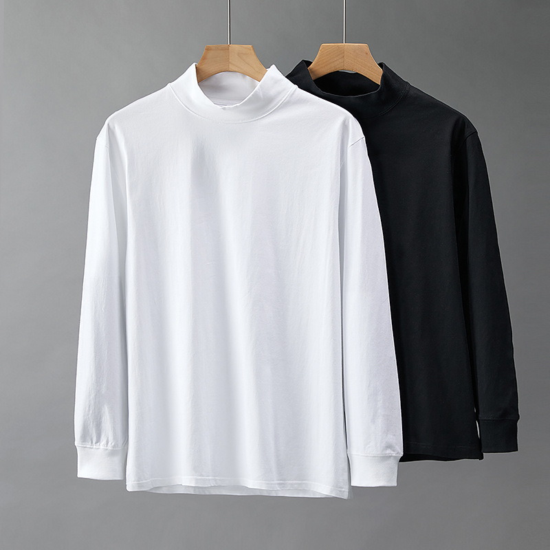 Главная страница > Осенняя хлопковая свободная резьбовая манжета мужская футболка с длинным рукавом и высоким вырезом сплошной цвет