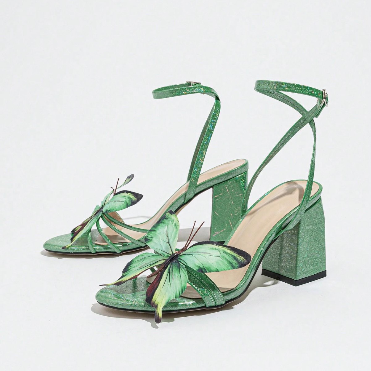 Заводская оптовая продажа трансграничная европейская и американская леди бабочка декоративный крест задние ремни с квадратной головой с открытыми пальцами на толстом каблуке сандалии женская обувь