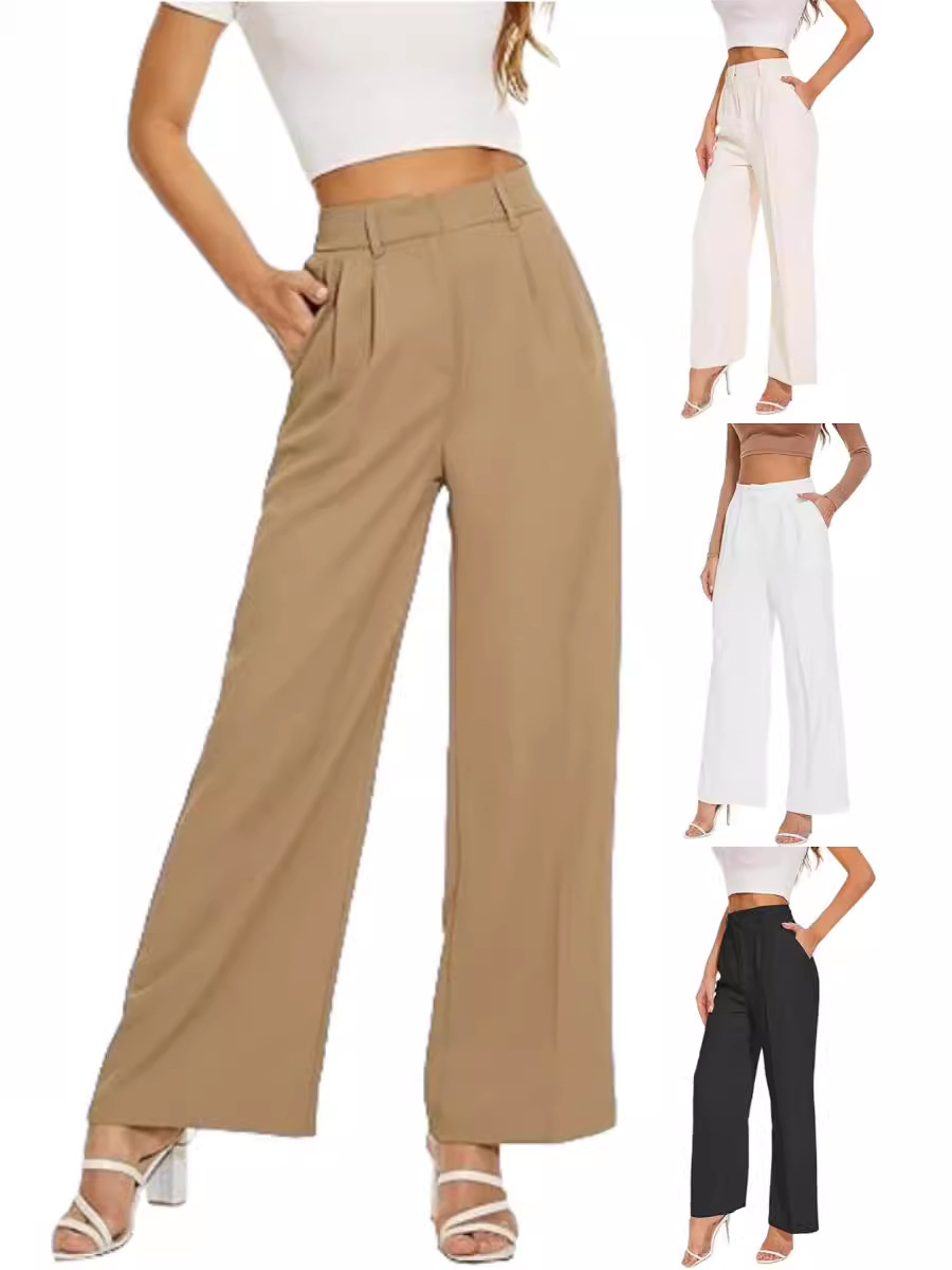 Главная страница > Женские широкие брюки спереди складки повседневные брюки с карманами костюм длинные брюки Amazon внешняя торговля трансграничный новый
