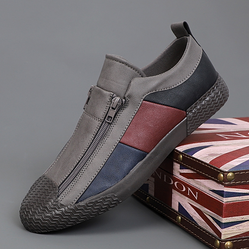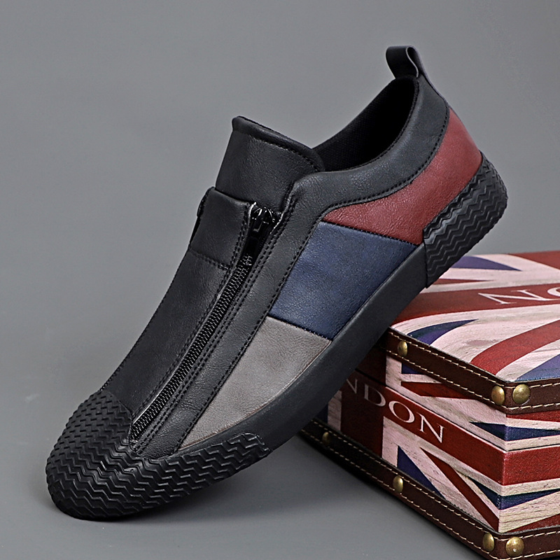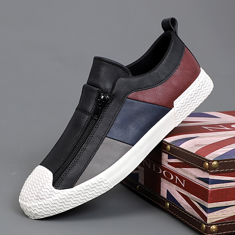 Главная страница > Мужские повседневные кожаные туфли 2025 года, низкие универсальные кроссовки на молнии, модные с цветовыми блоками, трансграничные бестселлеры, кожаные туфли больших размеров