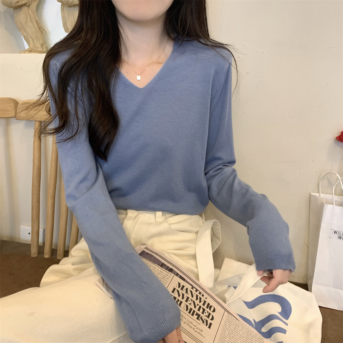 Осенний и зимний новый женский свитер с V-образным вырезом