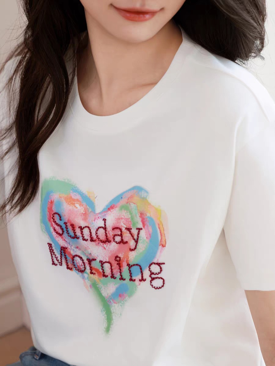 IFF Li футболка с принтом радужного сердца и белыми буквами, женский топ с короткими рукавами и тяжелой вышивкой, новинка лета 2025 г.