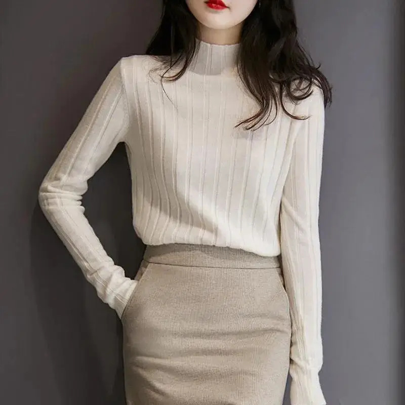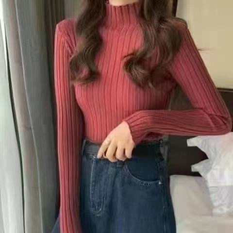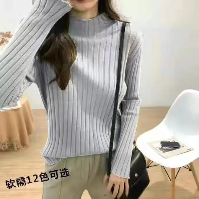 Главная страница > Осенняя и зимняя новая нижняя рубашка с свободным тонким трикотажным топом с длинными рукавами мягкий клейкий полуводолазный свитер женский 2024