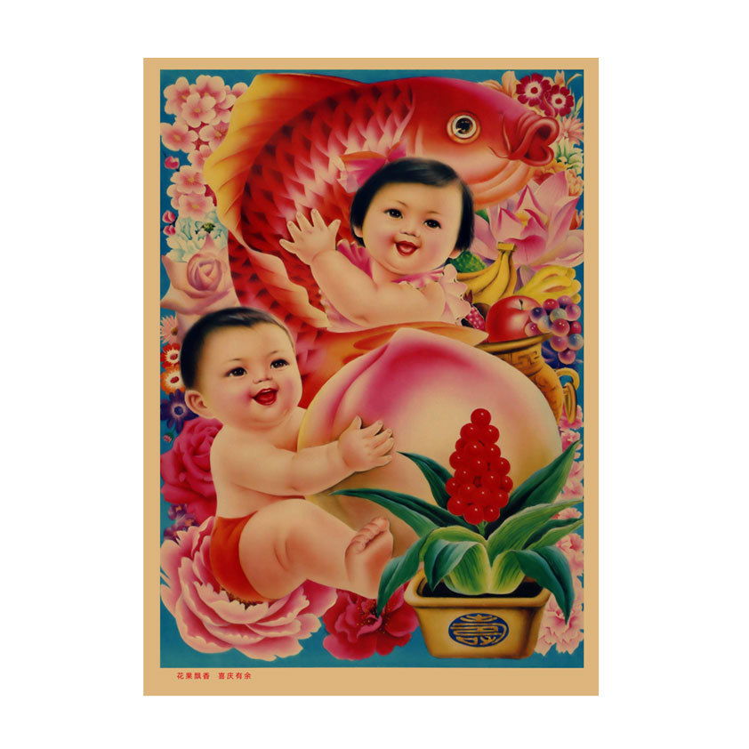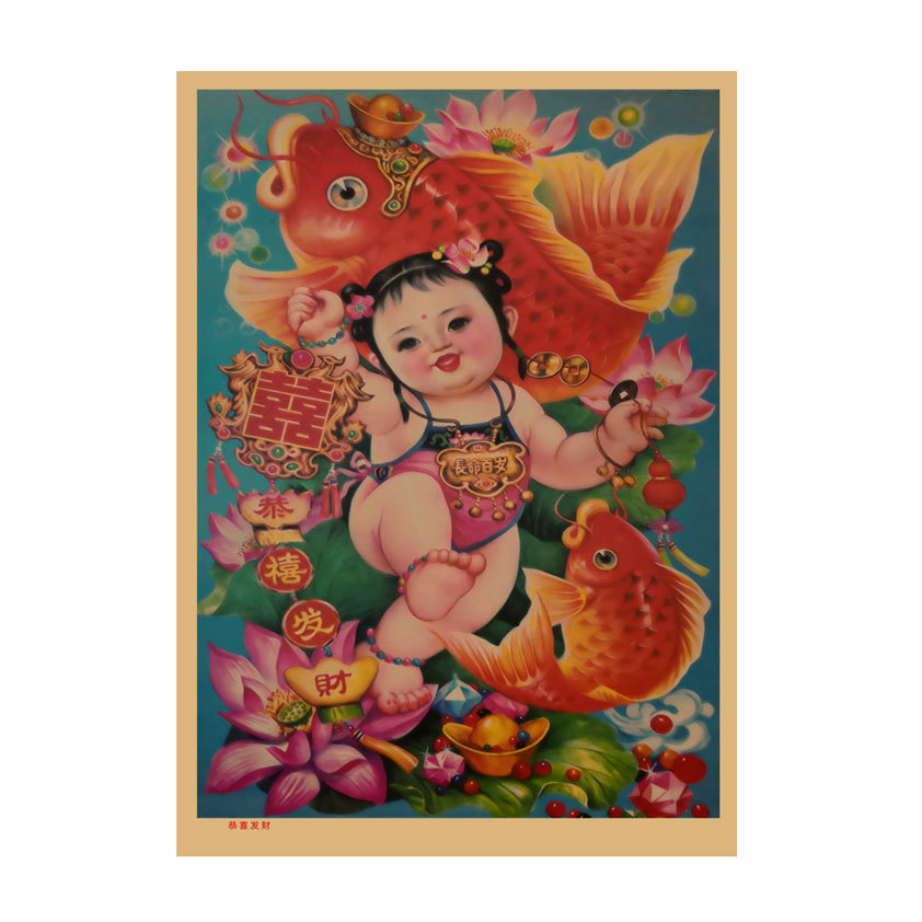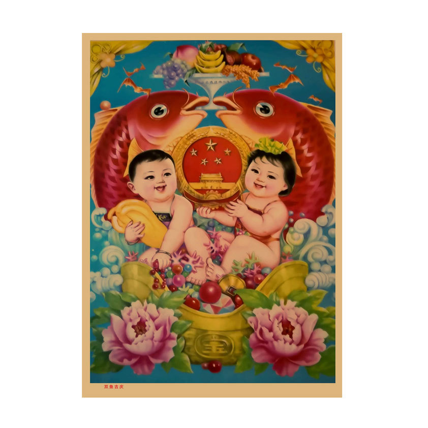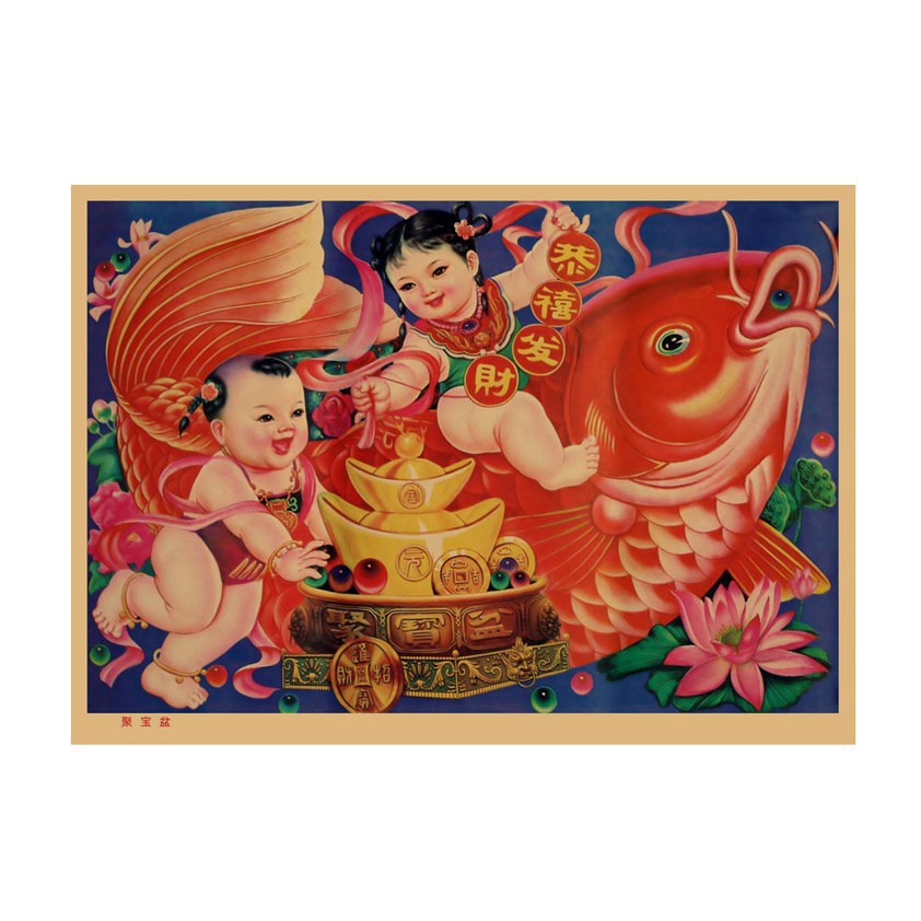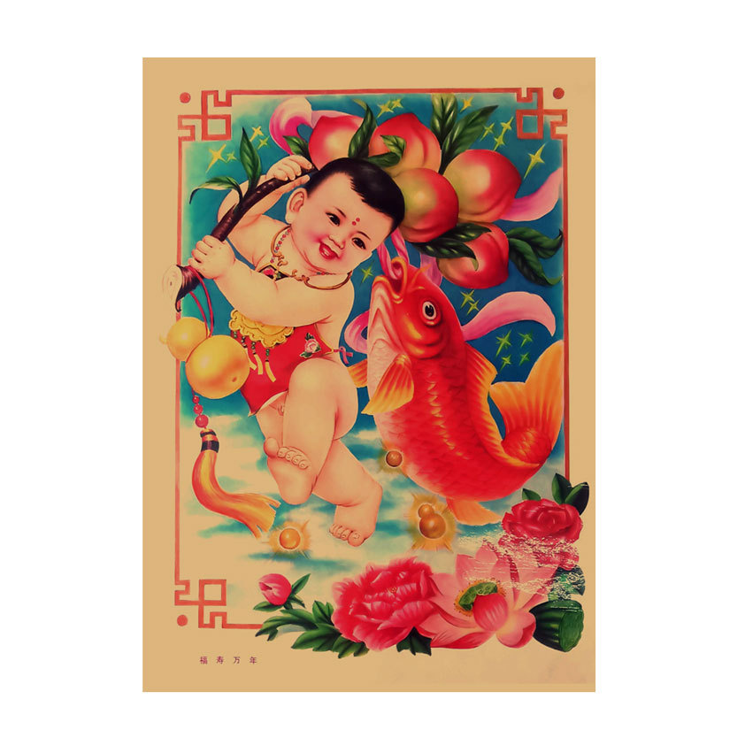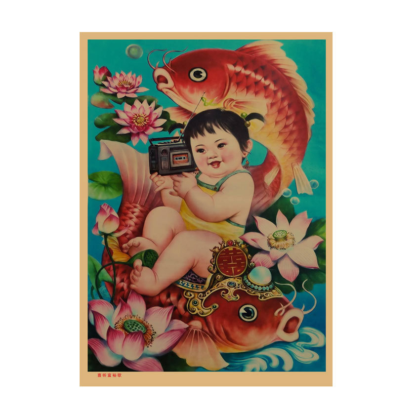 Новогодняя картина Baby Fish Lucky Carp Jumping Longmen праздничный плакат ретро крафт-бумага настенная живопись 657