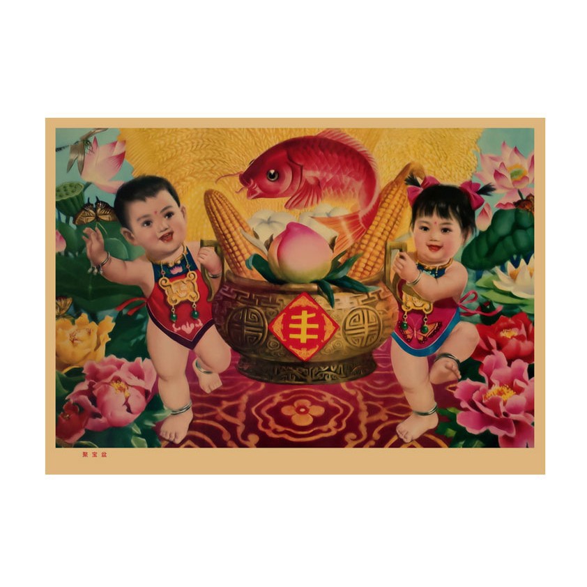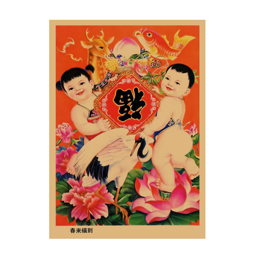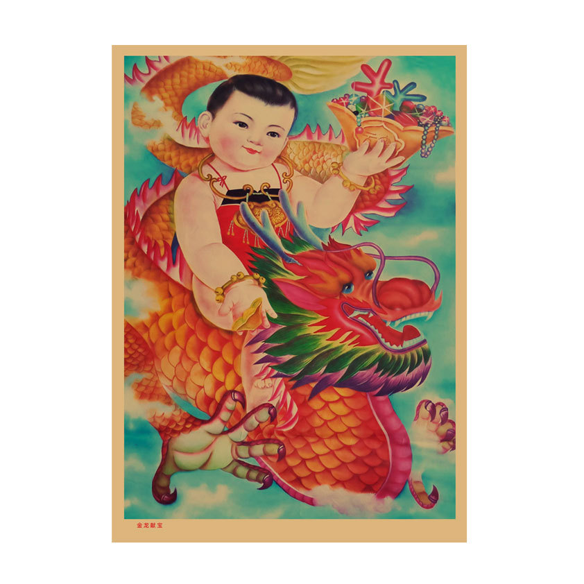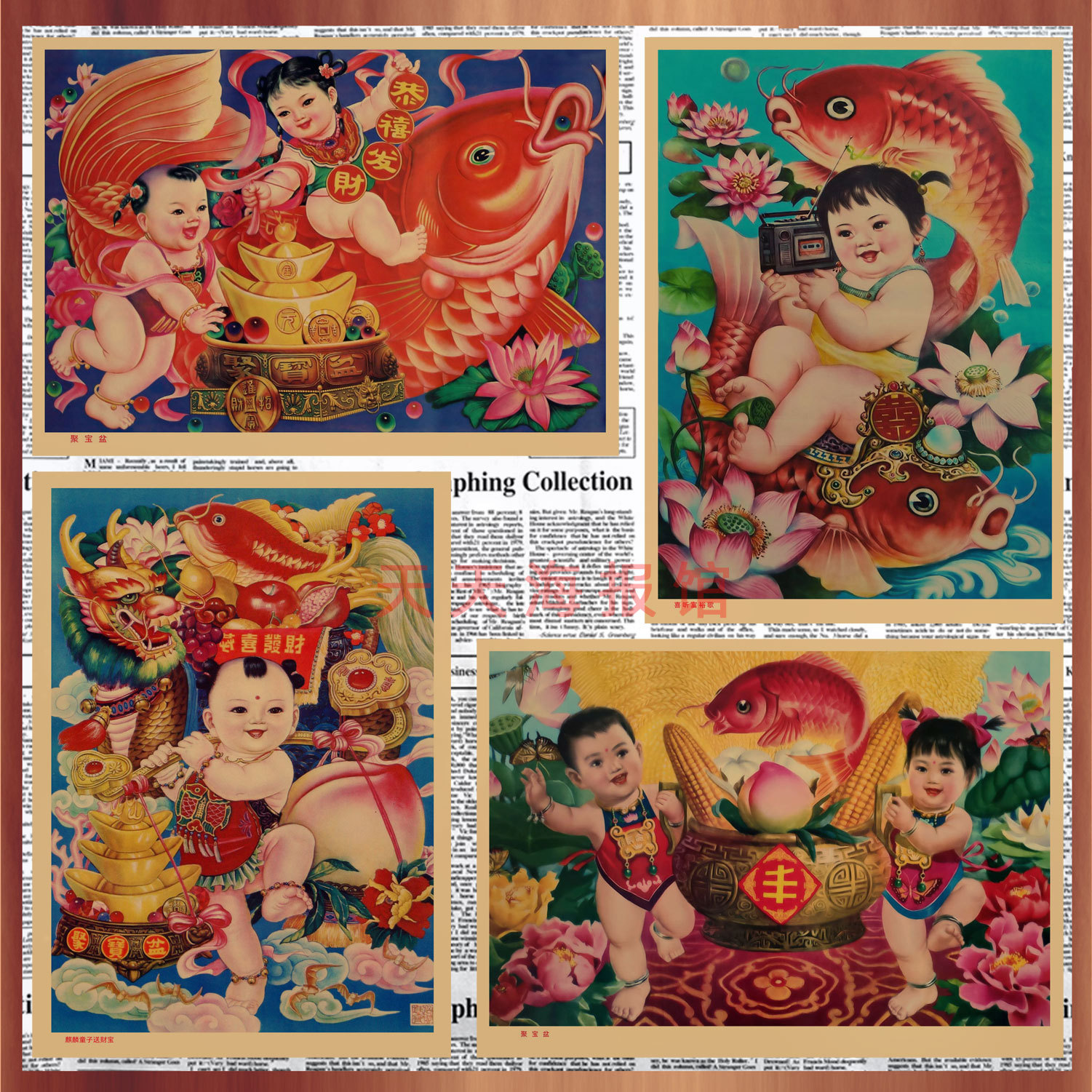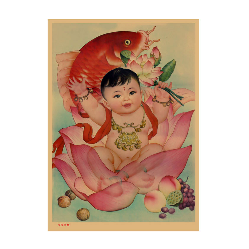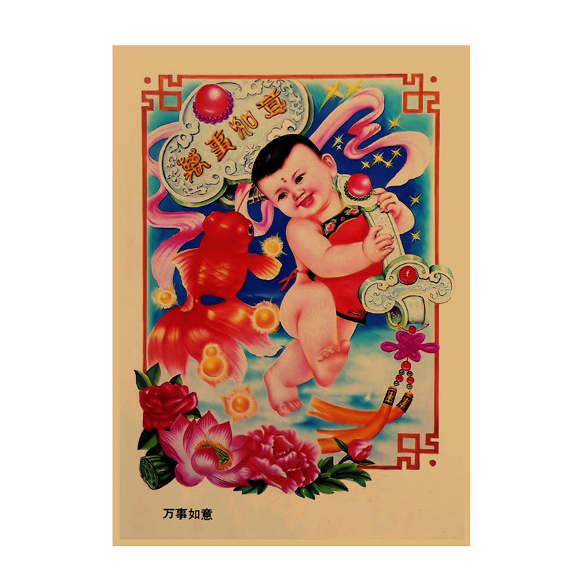 Новогодняя картина Baby Fish Lucky Carp Jumping Longmen праздничный плакат ретро крафт-бумага настенная живопись 657