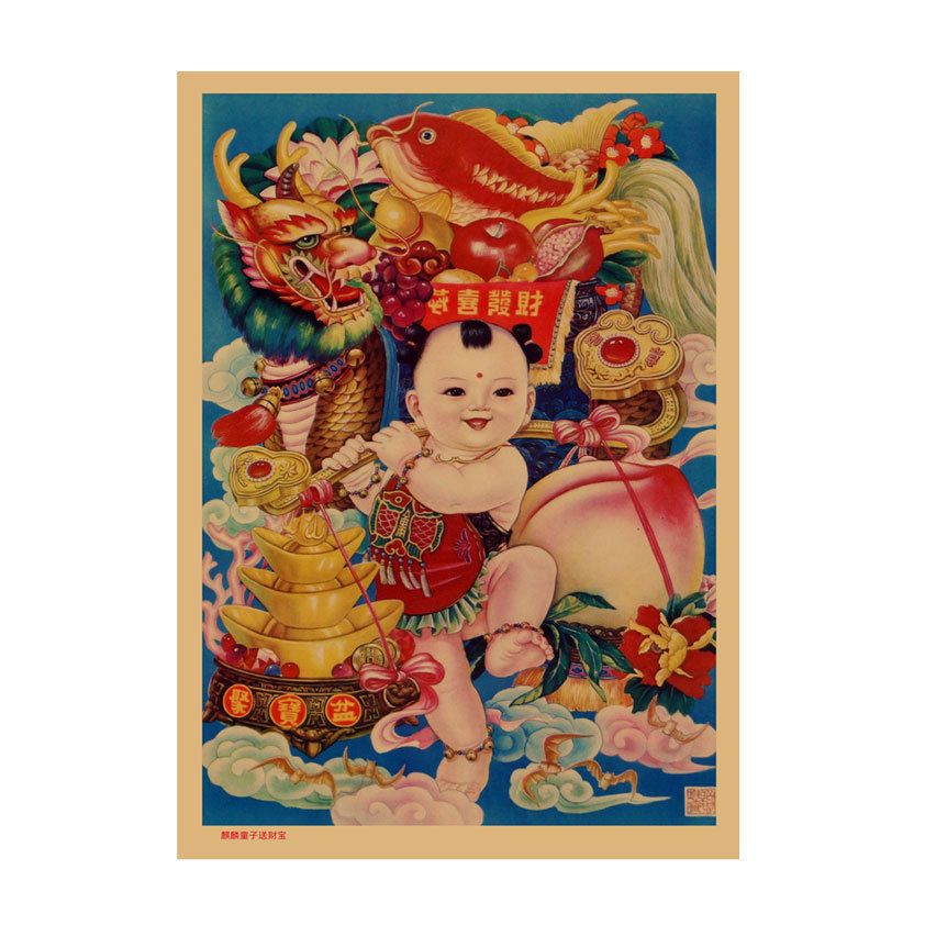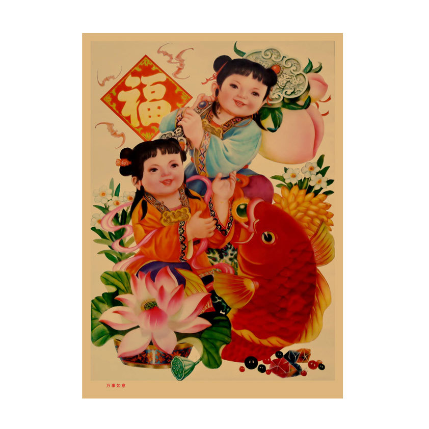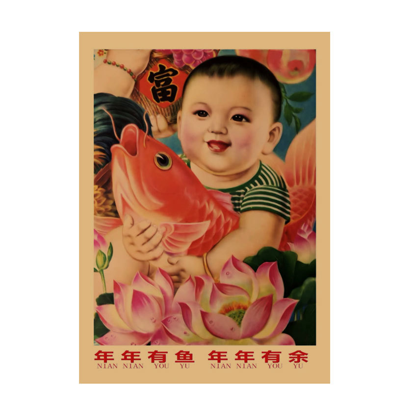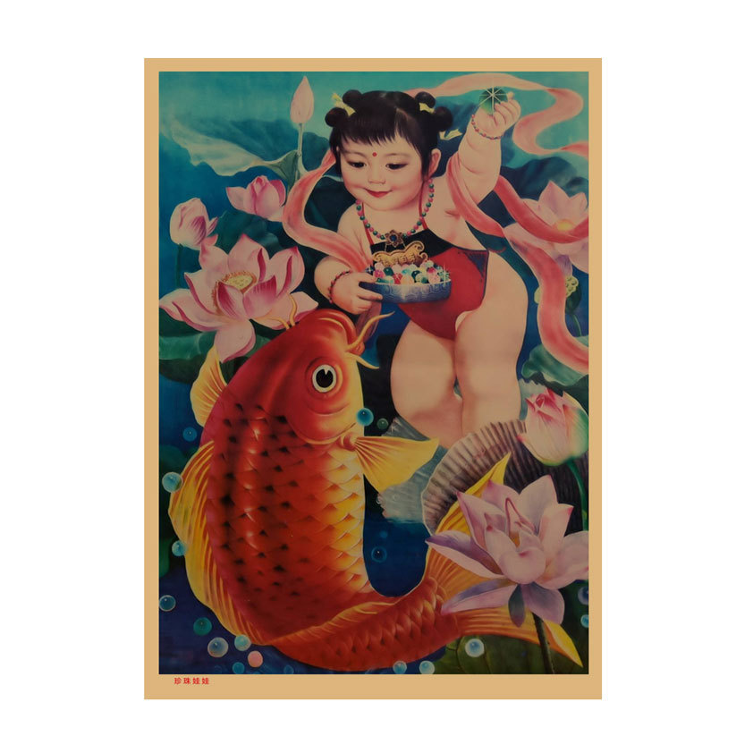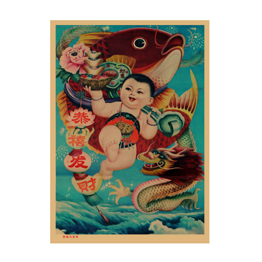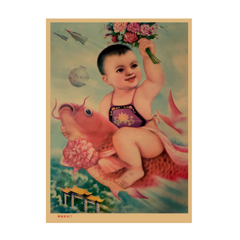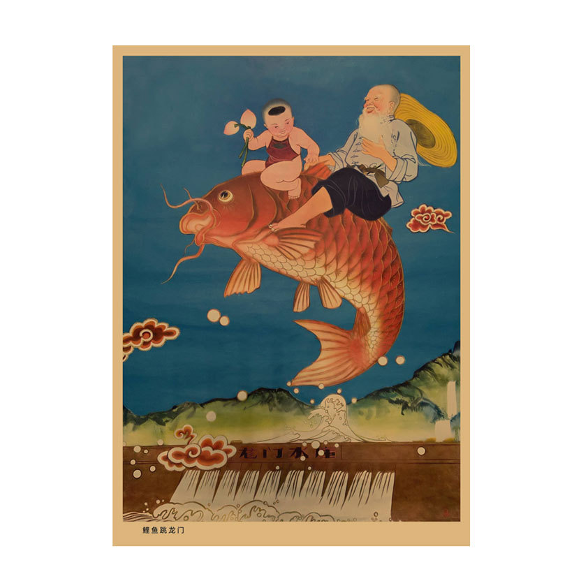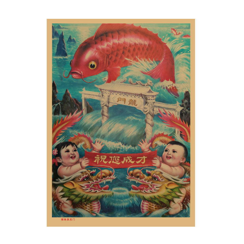 Главная страница > Новогодняя картина Baby Fish Lucky Carp Jumping Longmen праздничный плакат ретро крафт-бумага настенная живопись 657