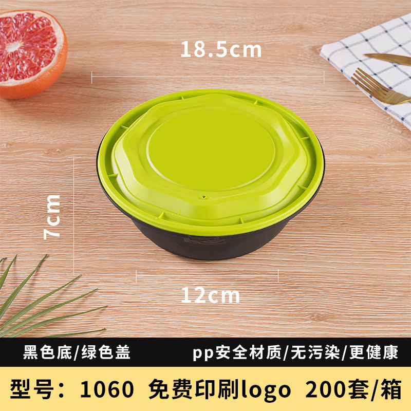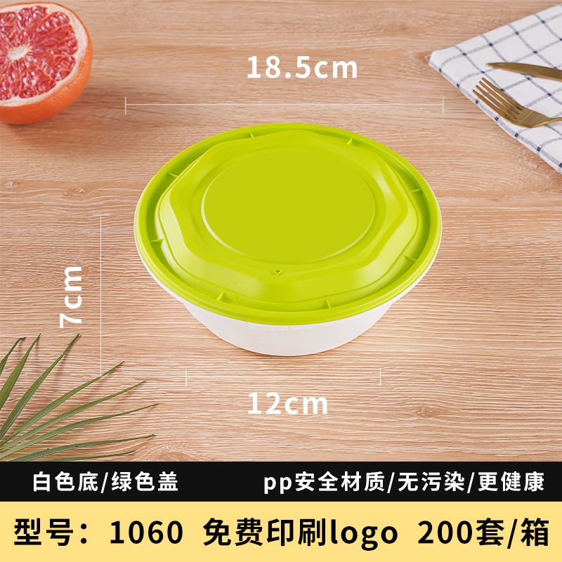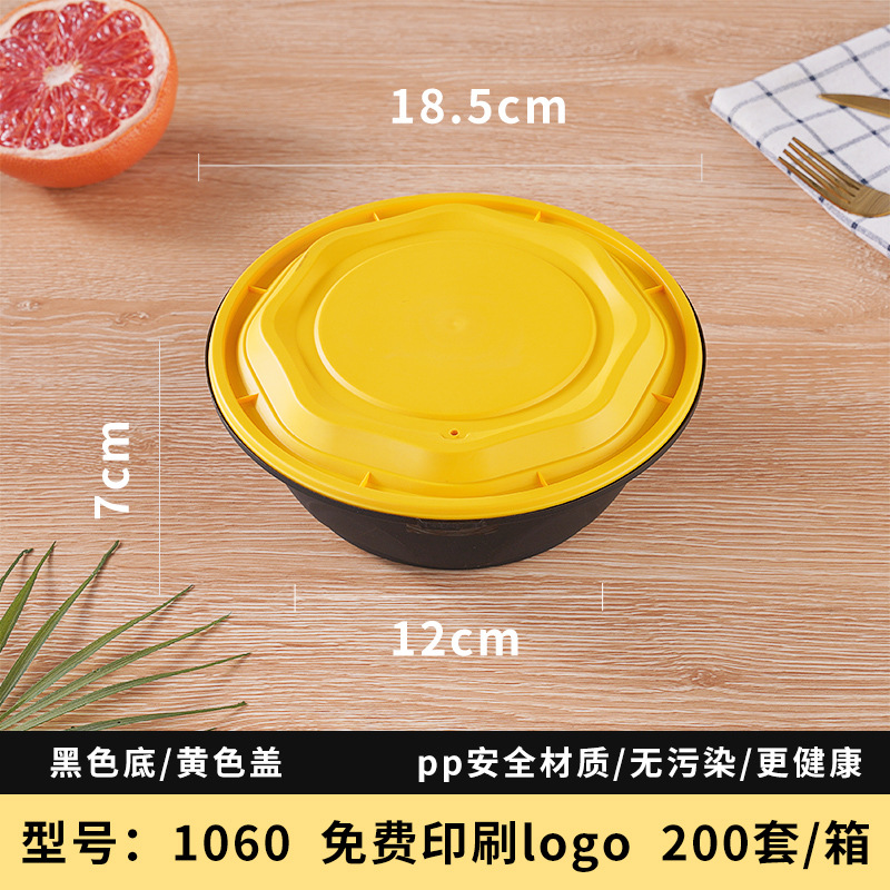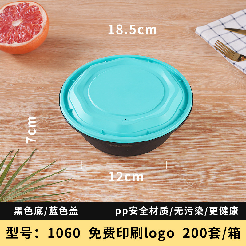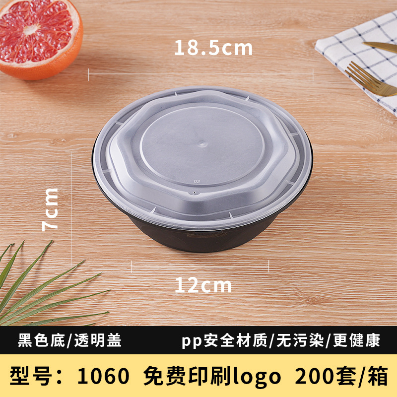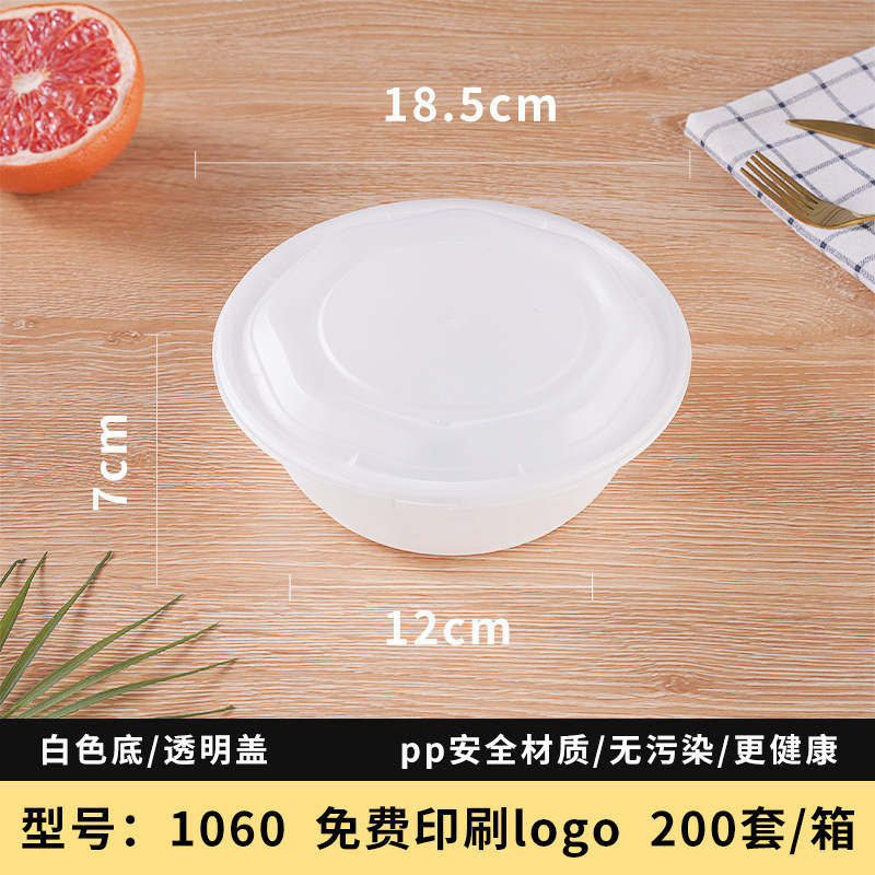 Одноразовая упаковочная коробка круглая полипропиленовая пластиковая утолщенная коробка для завтрака Высококачественная фаст-фуд на вынос чаша с уплотнением 1060 мл