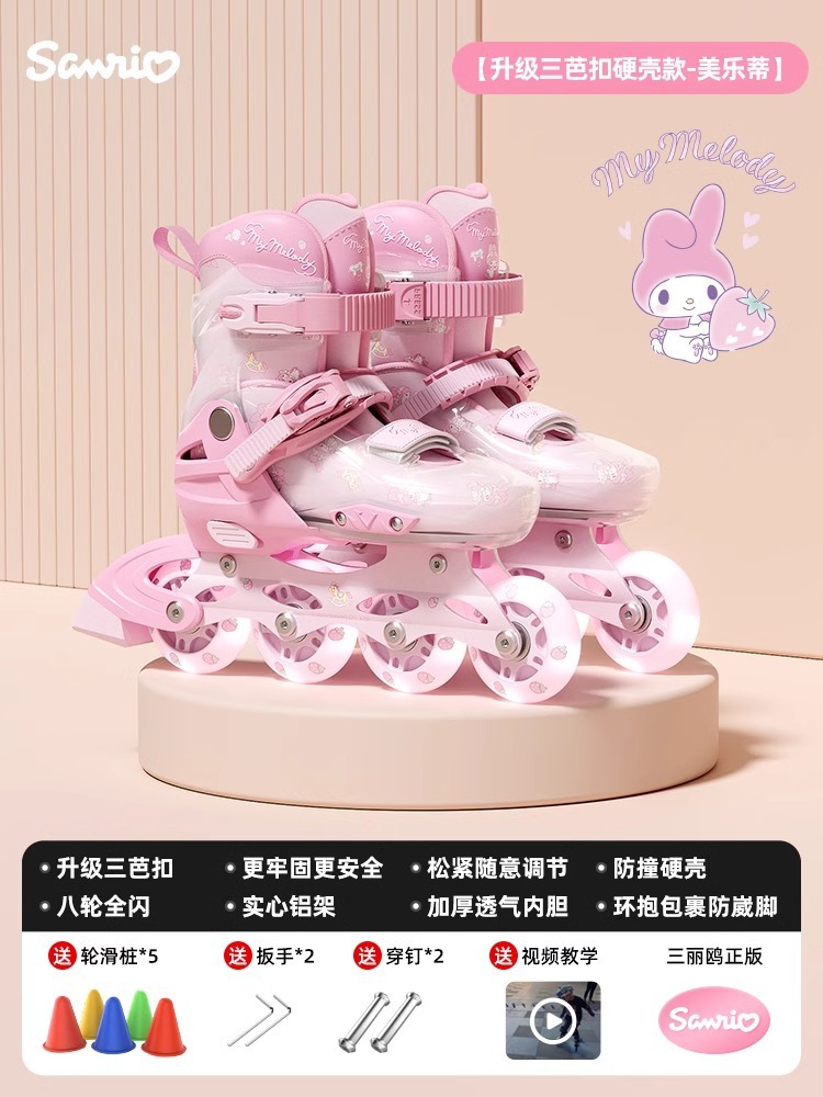 - Маленький размер S (подходит для размеров 26-32), внутренняя длина обуви 17-20,5 см, восьмиколесная полная вспышка.