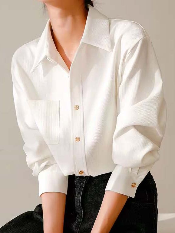Главная страница > Женская рубашка в французском стиле, плотная, белая, с начесом, на весну и осень, с длинным рукавом, уникальная и шикарная, в стиле ретро, многослойная рубашка в гонконгском стиле.