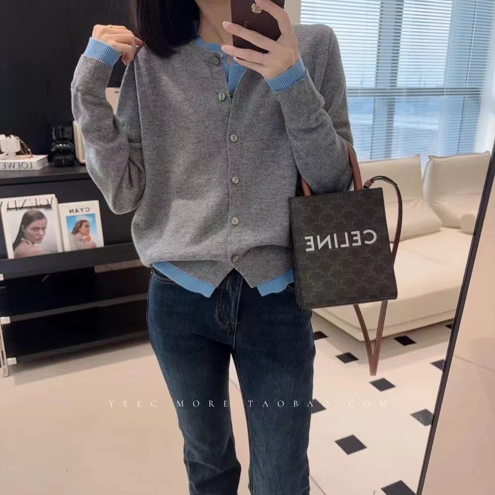 Главная страница > 100% красивый шерстяной кардиган женский осень-зима серый поддельный вязаный свитер из двух частей высокого уровня чувство старый денежный стиль свитер куртка