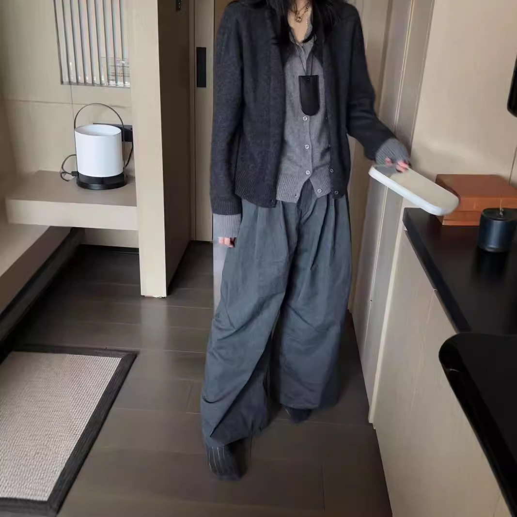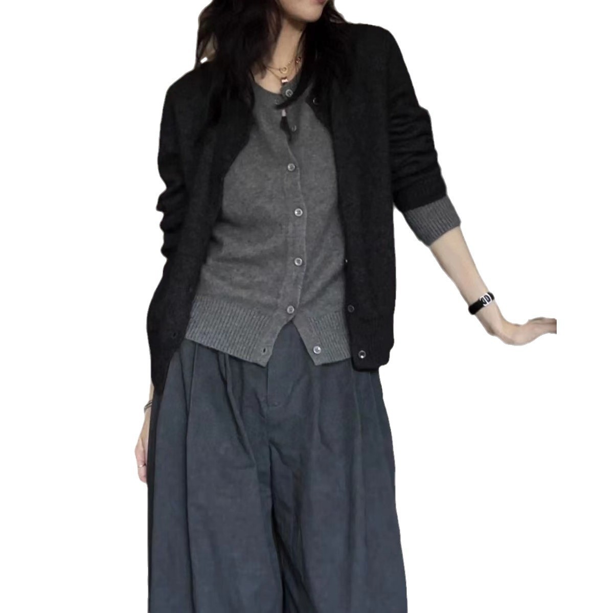 100% красивый шерстяной кардиган женский осень-зима серый поддельный вязаный свитер из двух частей высокого уровня чувство старый денежный стиль свитер куртка