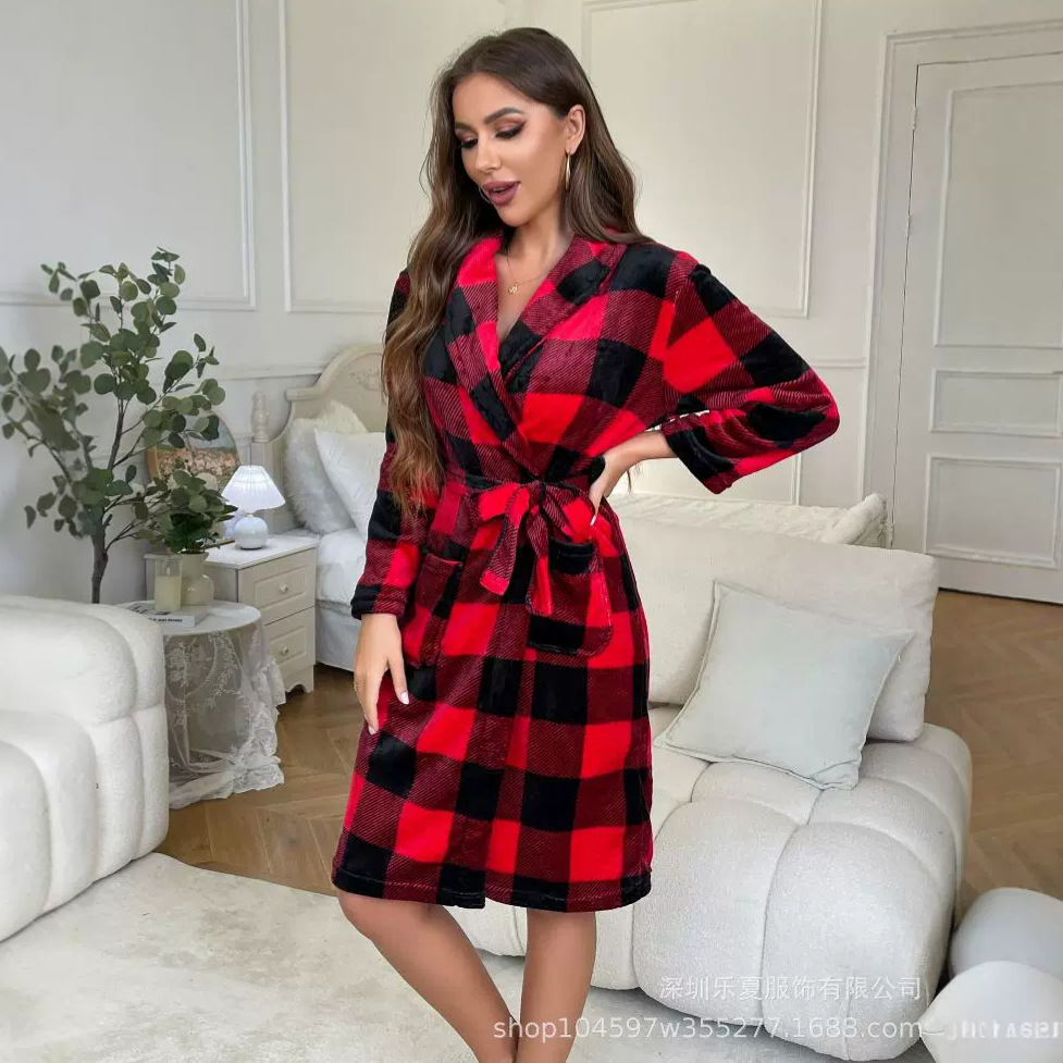 Главная страница > Трансграничная Европа и США Amazon новый фланелевый халат пижамы зимние женские длинные рукава шнуровка
