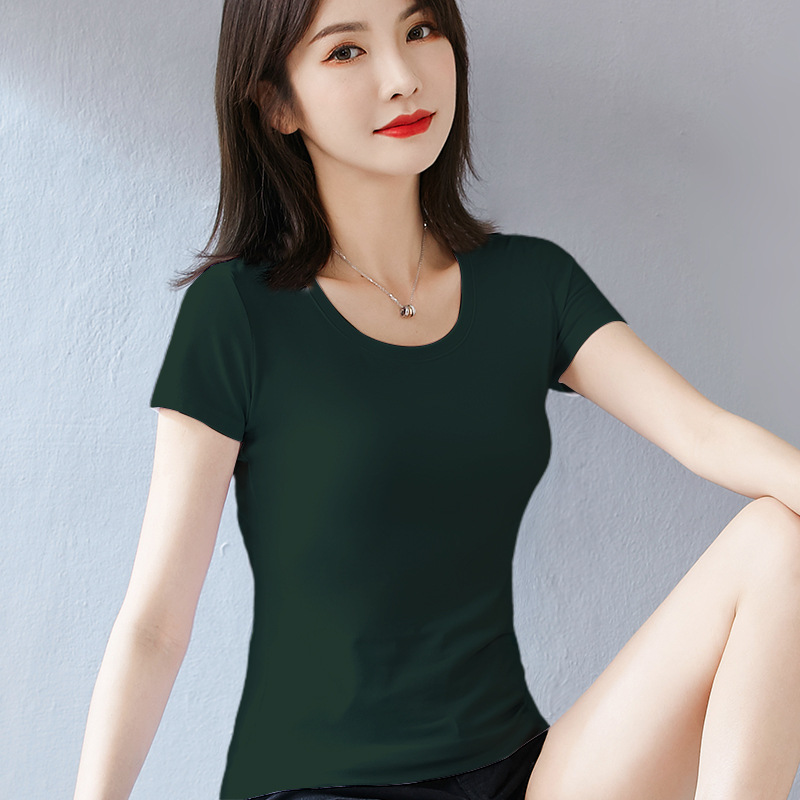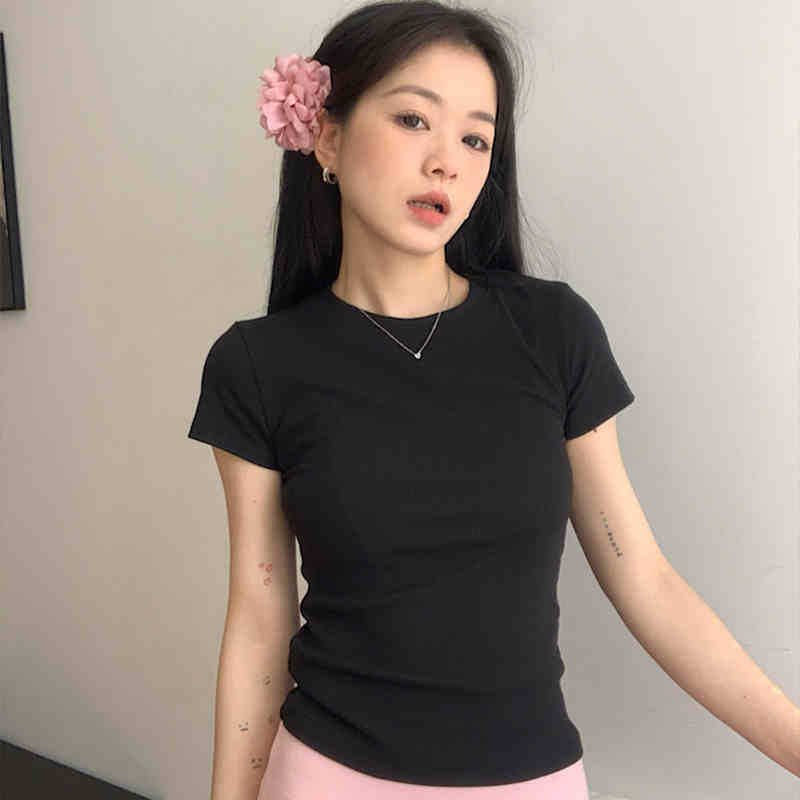 Главная страница > Белая футболка из чистого хлопка, Женская облегающая Летняя короткая однотонная облегающая Базовая рубашка с короткими рукавами, элегантный топ с внутренней стороны