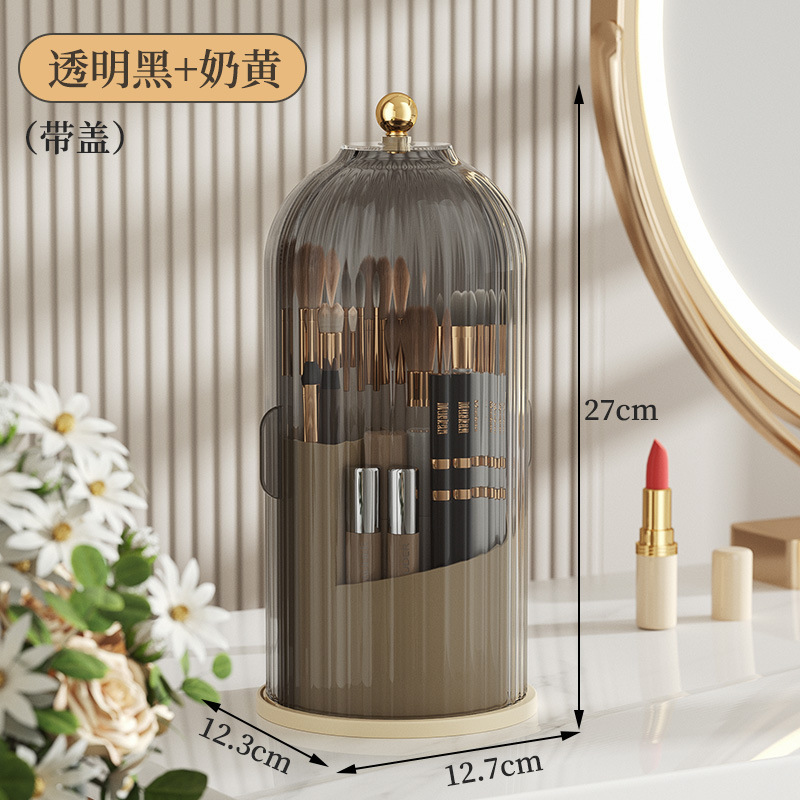 Вращающаяся подставка для кистей для макияжа в форме птичьей клетки, органайзер для туалетного столика, пылезащитный настольный органайзер для косметики, вращающийся контейнер для хранения.