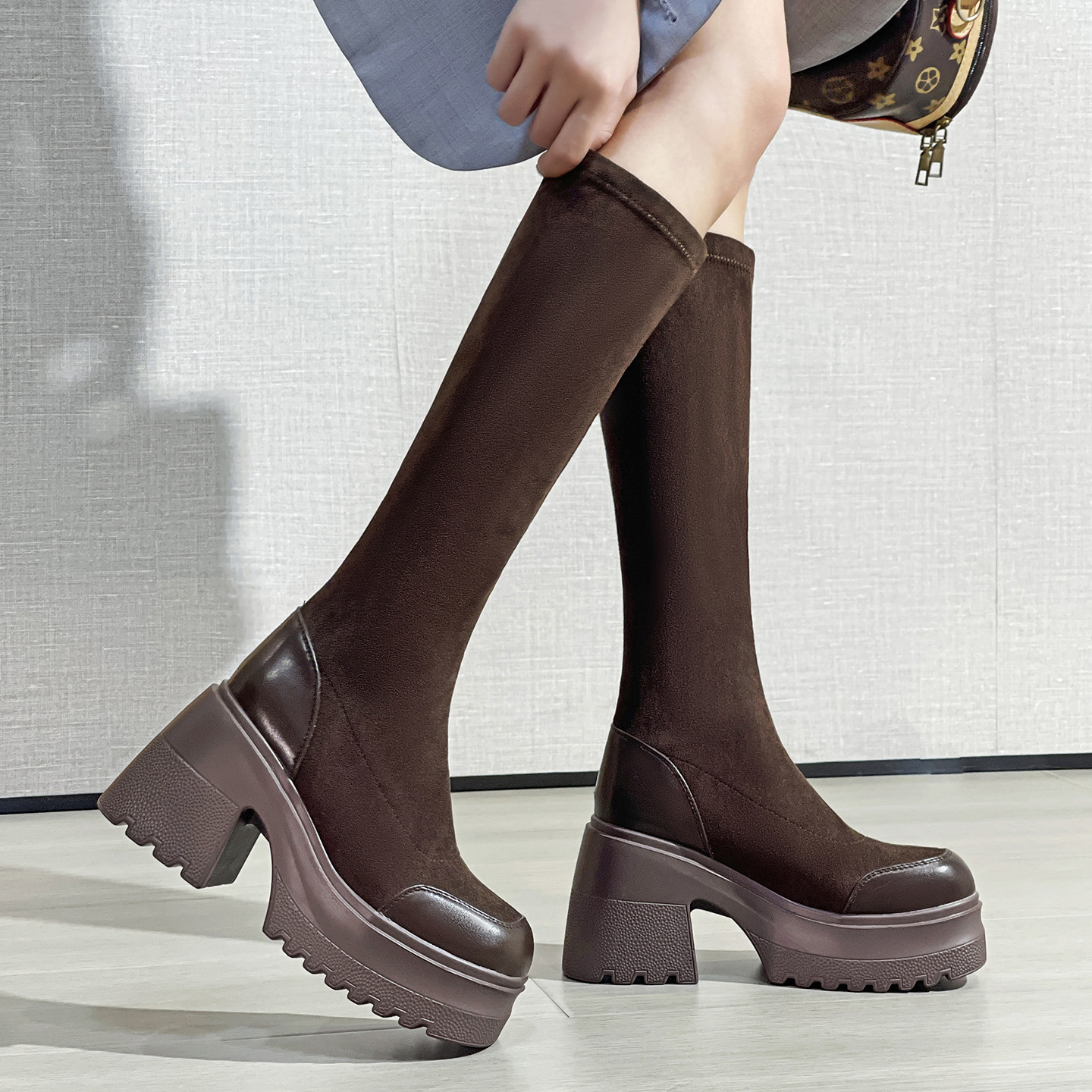 Главная страница > Женские эластичные сапоги на толстой подошве 10 см, популярные осенние сапоги выше колена для верховой езды, длинные узкие сапоги 2025 года.