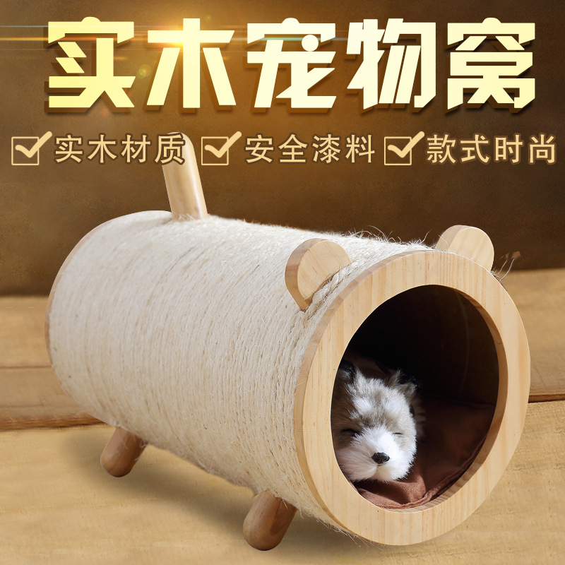 Главная страница > Сосновый туннель из массива дерева Кошачья пещера Кошачье гнездо Кошкин дом Four Seasons Универсальный маленький удобный дышащий мини-Кошачье гнездо