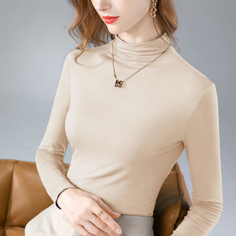 Главная страница > Женская рубашка с полуводолазкой, новинка 2025, женская модальная футболка с длинными рукавами, теплый утолщенный топ на внутренней флисовой подкладке