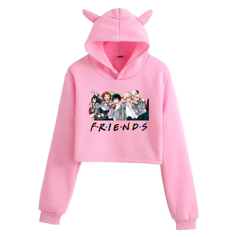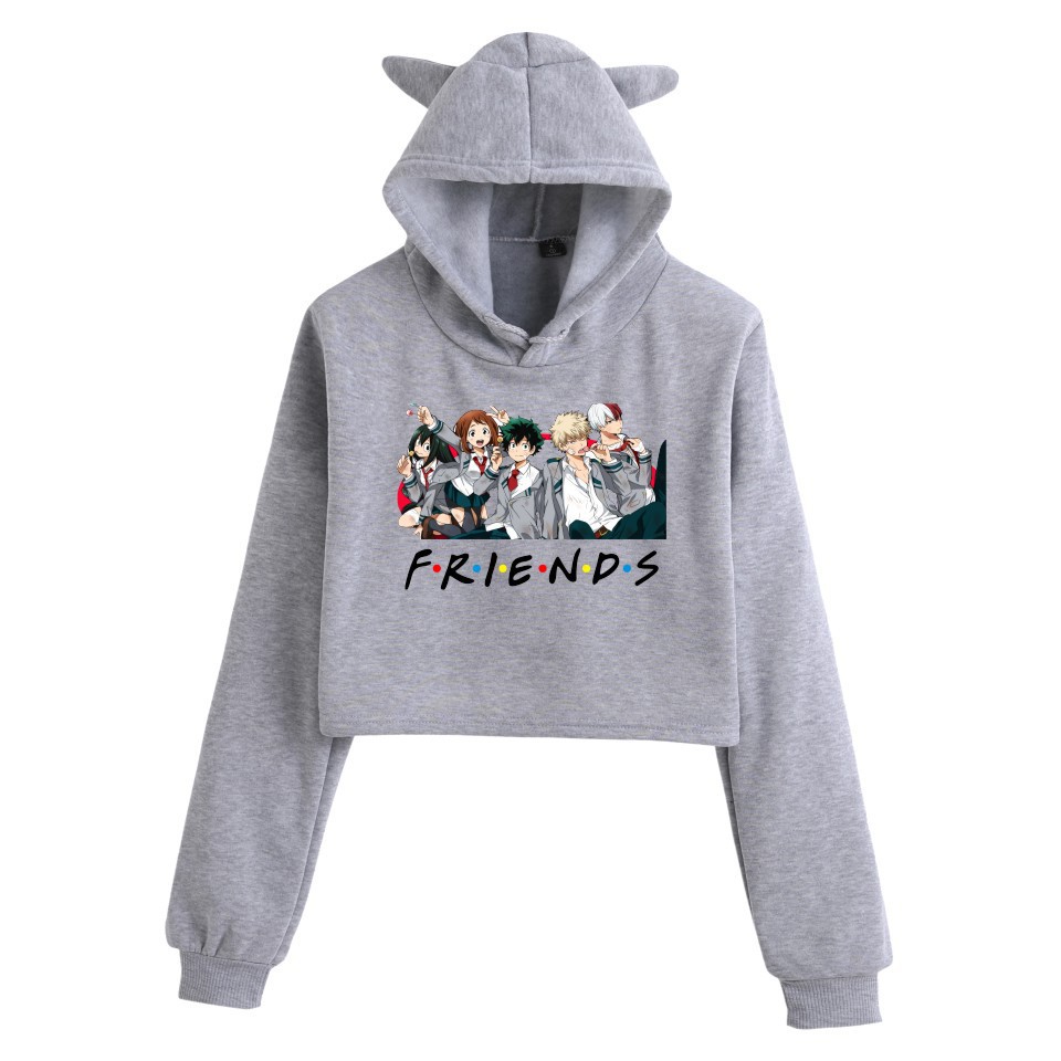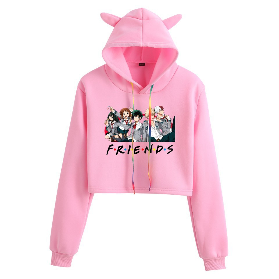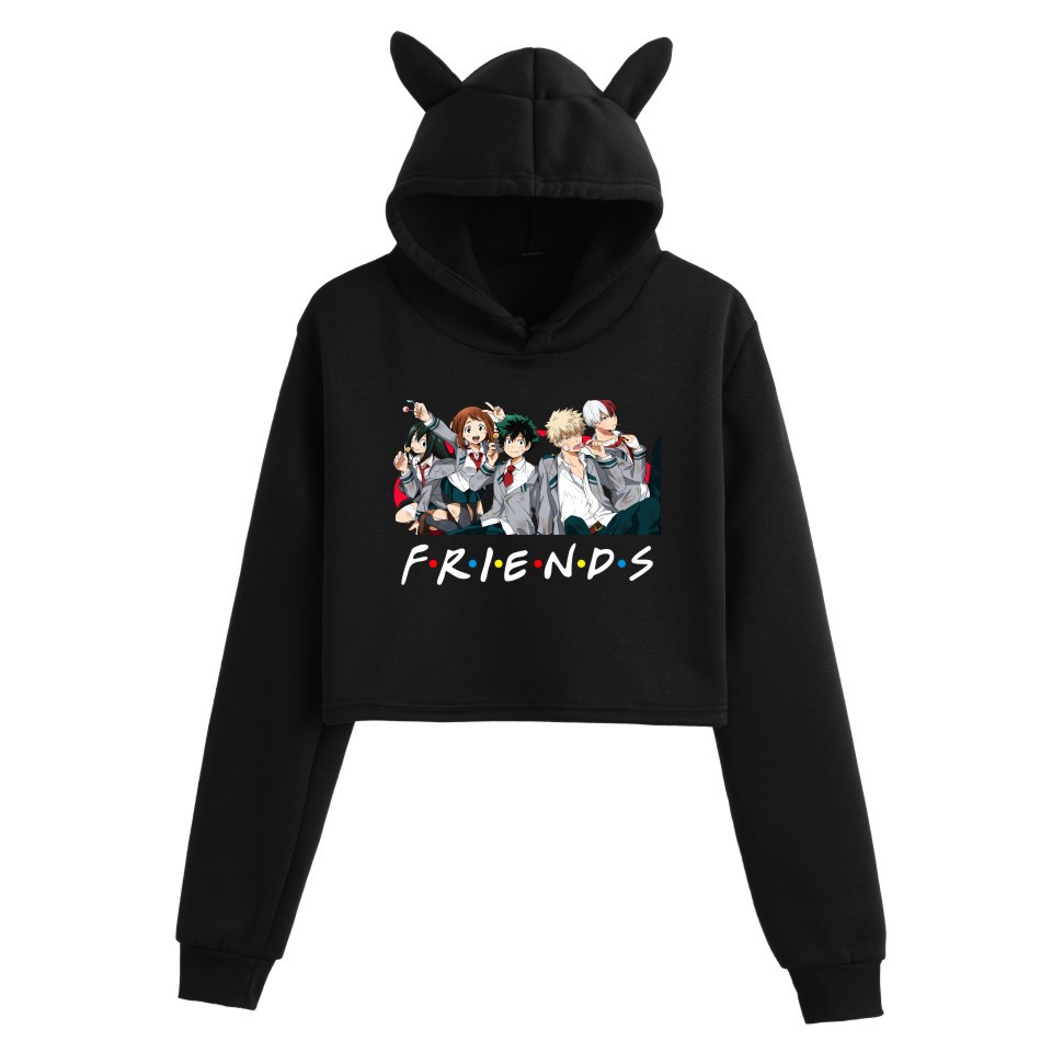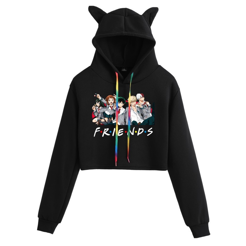 Новая трансграничная одежда My Hero College Вторичный принт с капюшоном для кошачьих ушей и пупка оптом