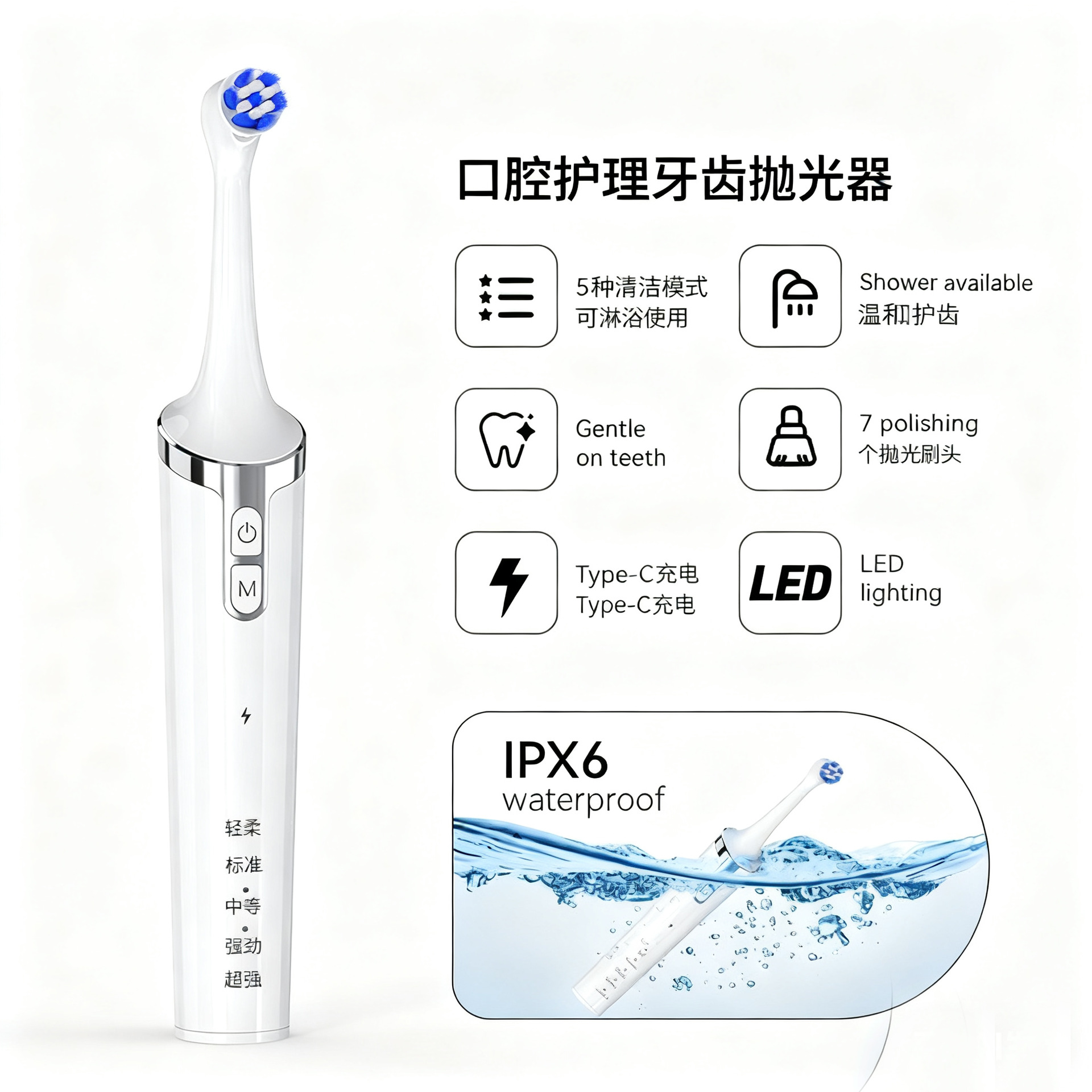 Трансграничная машина для полировки зубов, вращающаяся полностью автоматическая перезаряжаемая электрическая звуковая зубная щетка для взрослых для мужчин и женщин, защита десен