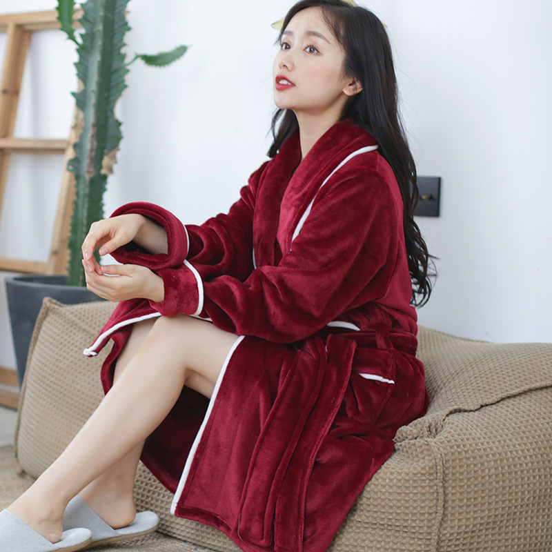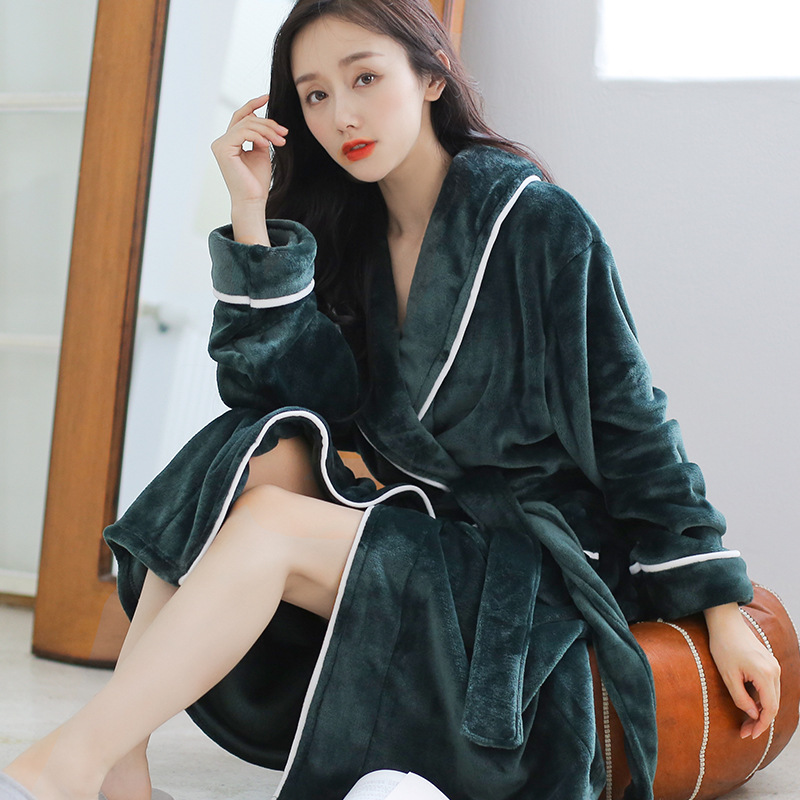 Ночная одежда женский осенний и зимний толстый фланелевый халат длинный мужчина и женщина пара коралловый бархат халат пижама