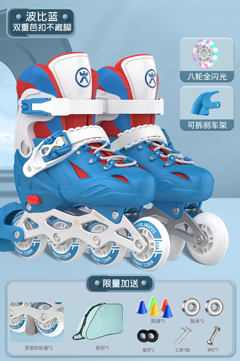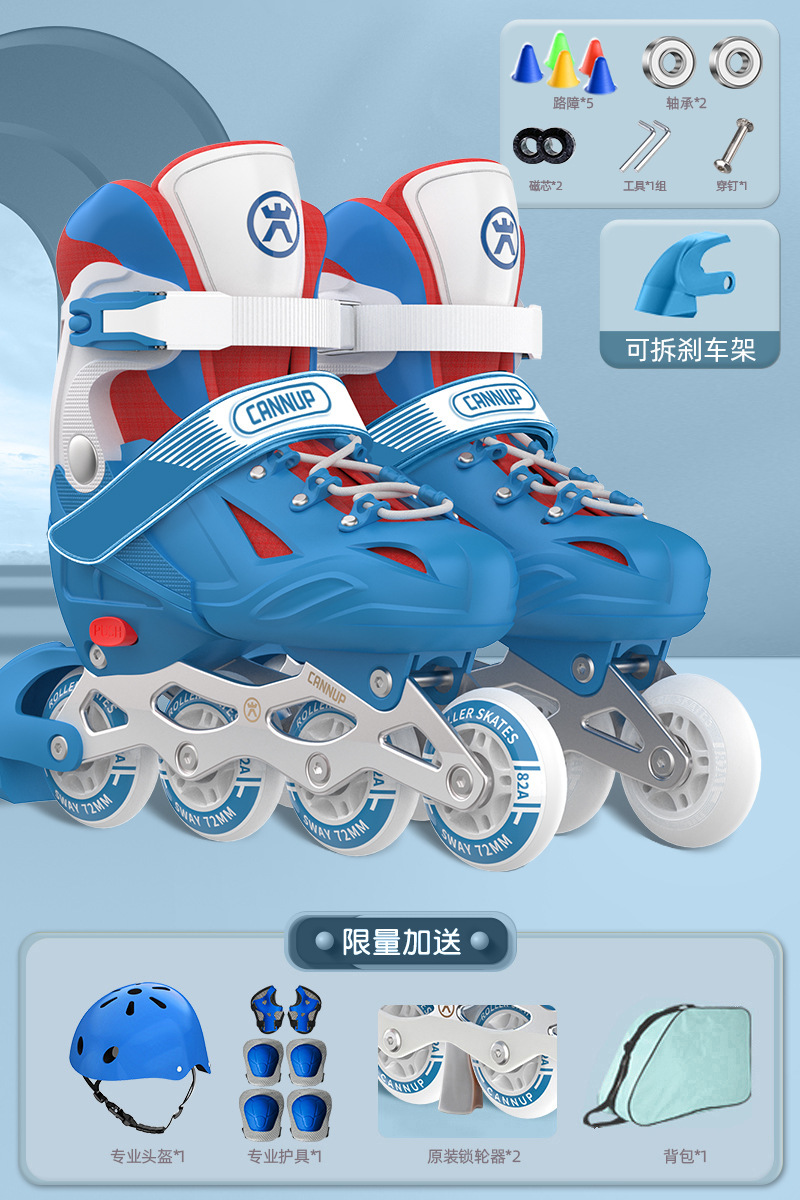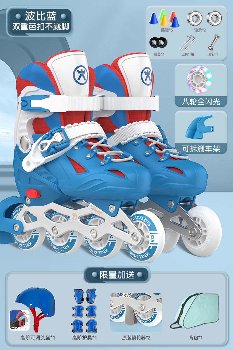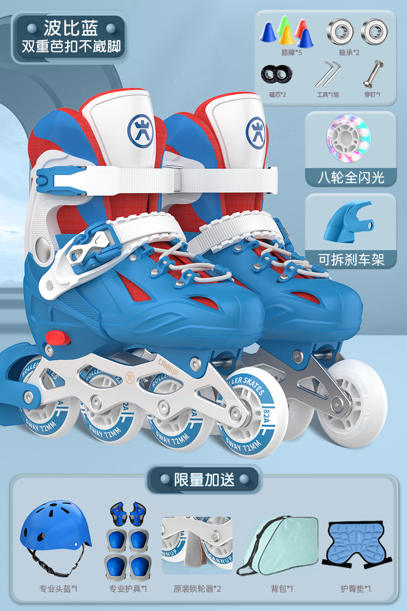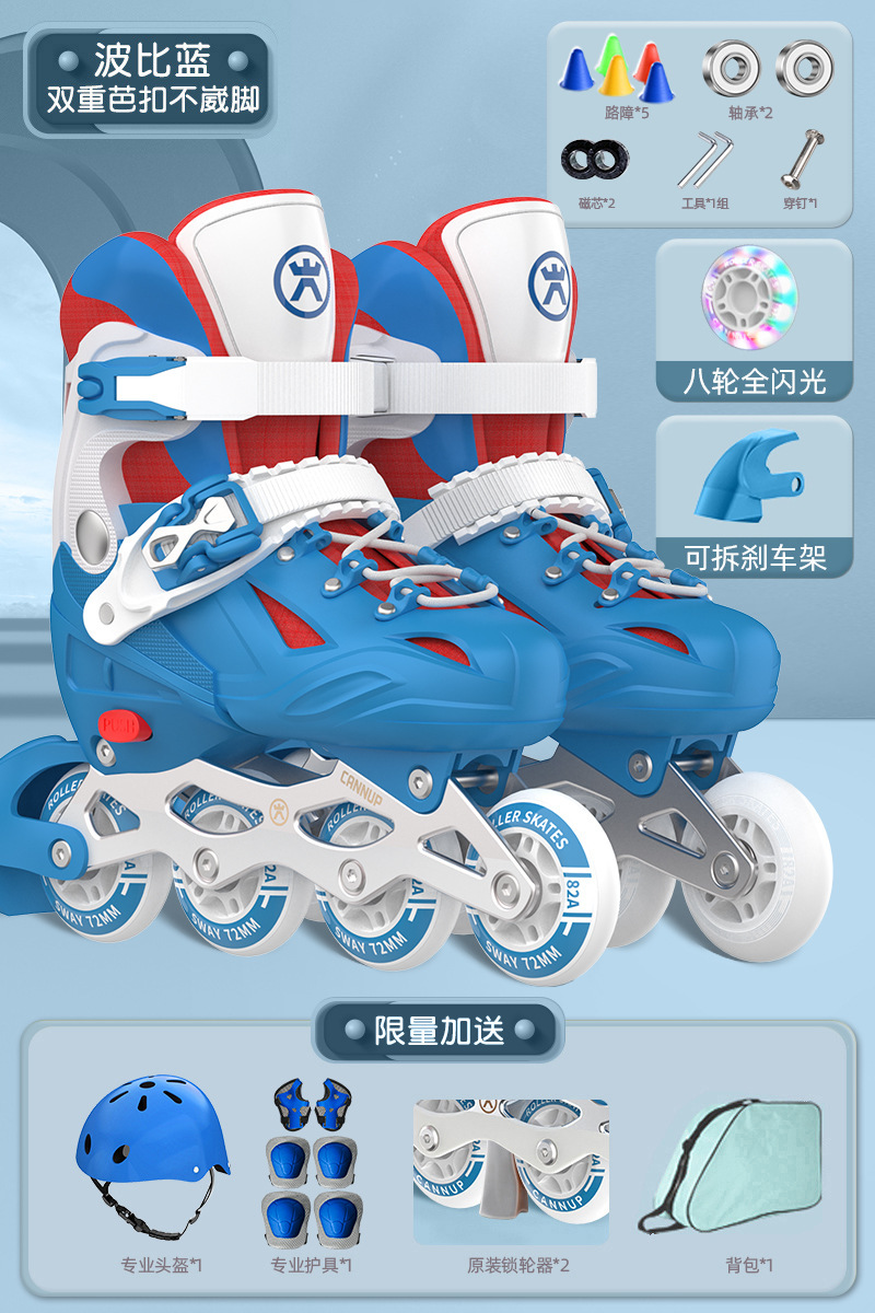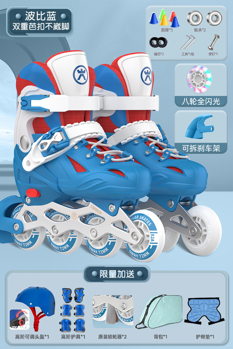 Новичок·Защита от падения [Синий·Двойная пряжка без растяжений ног] Замок на колесе + подарочный пакет + рюкзак