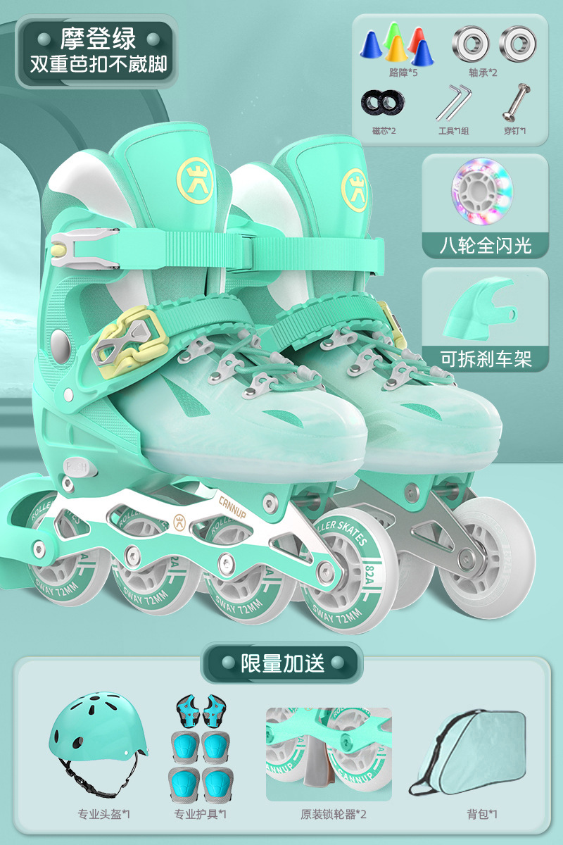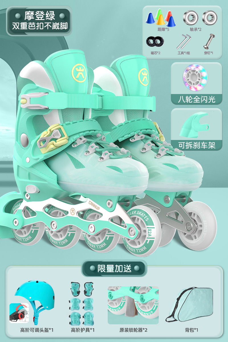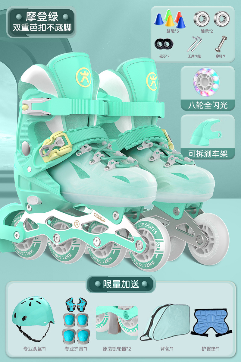 Новичок·Защита от падения [Зеленый·Двойная пряжка без растяжений ног] Замок на колесе + подарочный пакет + рюкзак