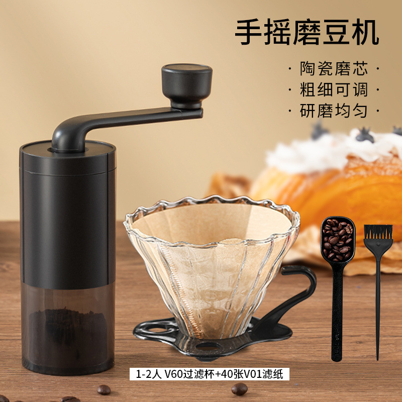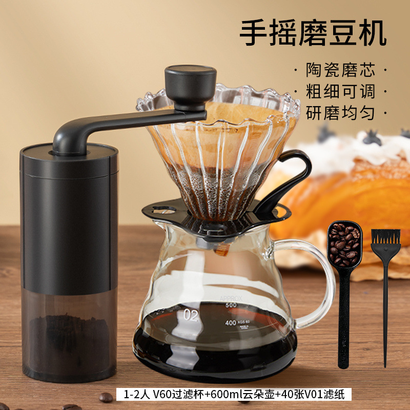 Кофемолка + V-образная фильтрующая чашка + облачный горшок + ложка + щетка + фильтровальная бумага в комплекте