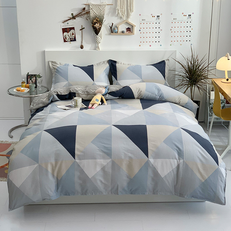 Комплект постельного белья из чистого хлопка в стиле INS, четыре предмета: пододеяльник, простыня, домашний текстиль, наволочки, цвет клубника.