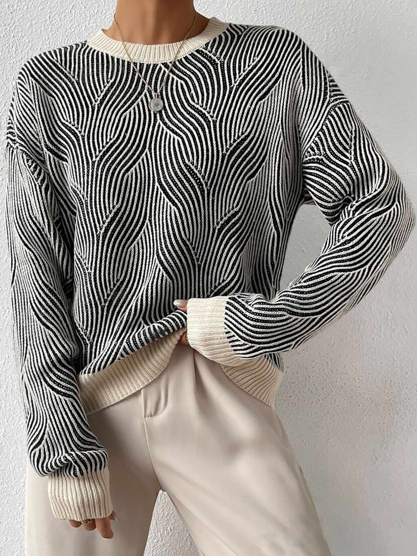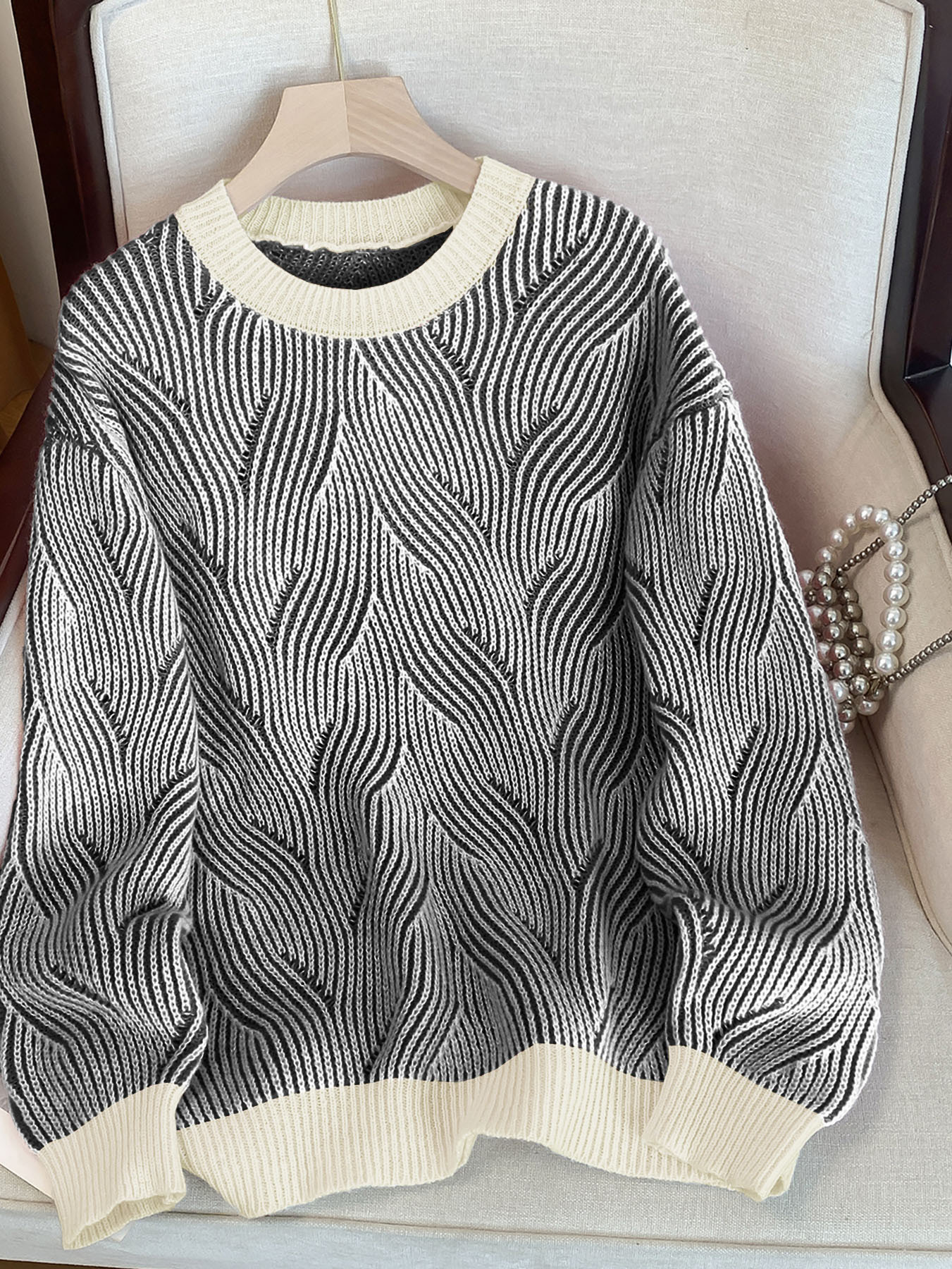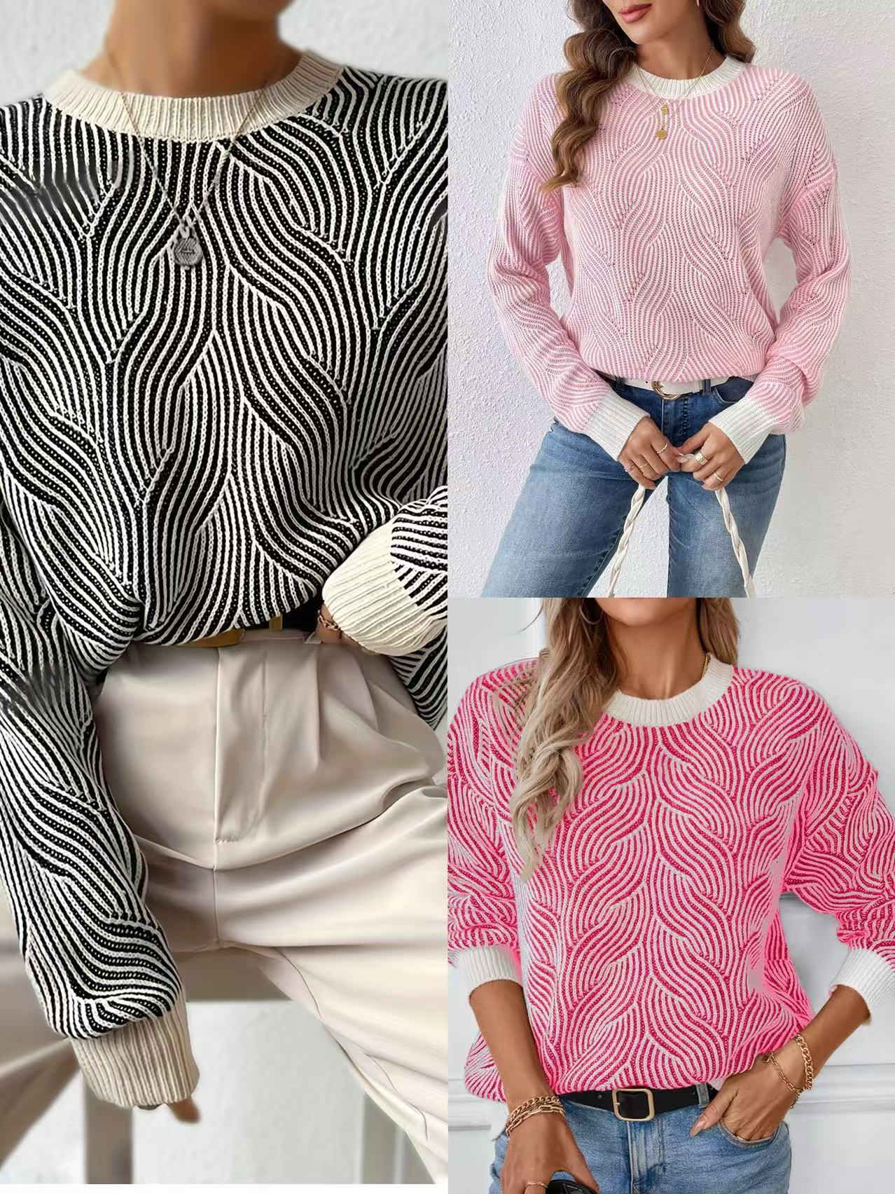 Главная страница > Женский вязаный свитер для трансграничной торговли, новинка весны-осени 2025, с круглым вырезом, в полоску, с цветовыми блоками, модный, универсальный пуловер