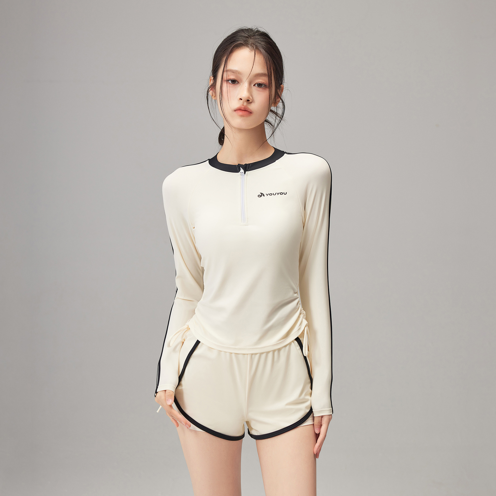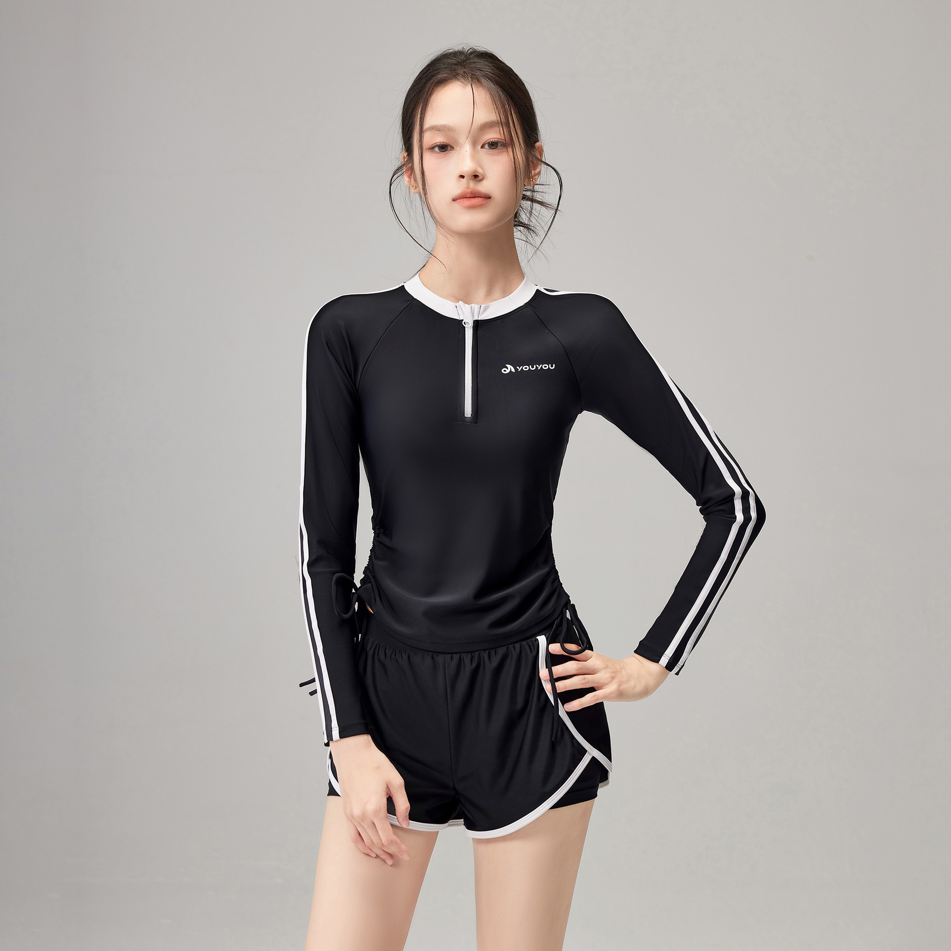 Главная страница > Женский купальник из двух частей, новинка 2025 года, консервативный, утягивающий живот, с длинными рукавами, спортивный бассейн, модный свежий стиль.
