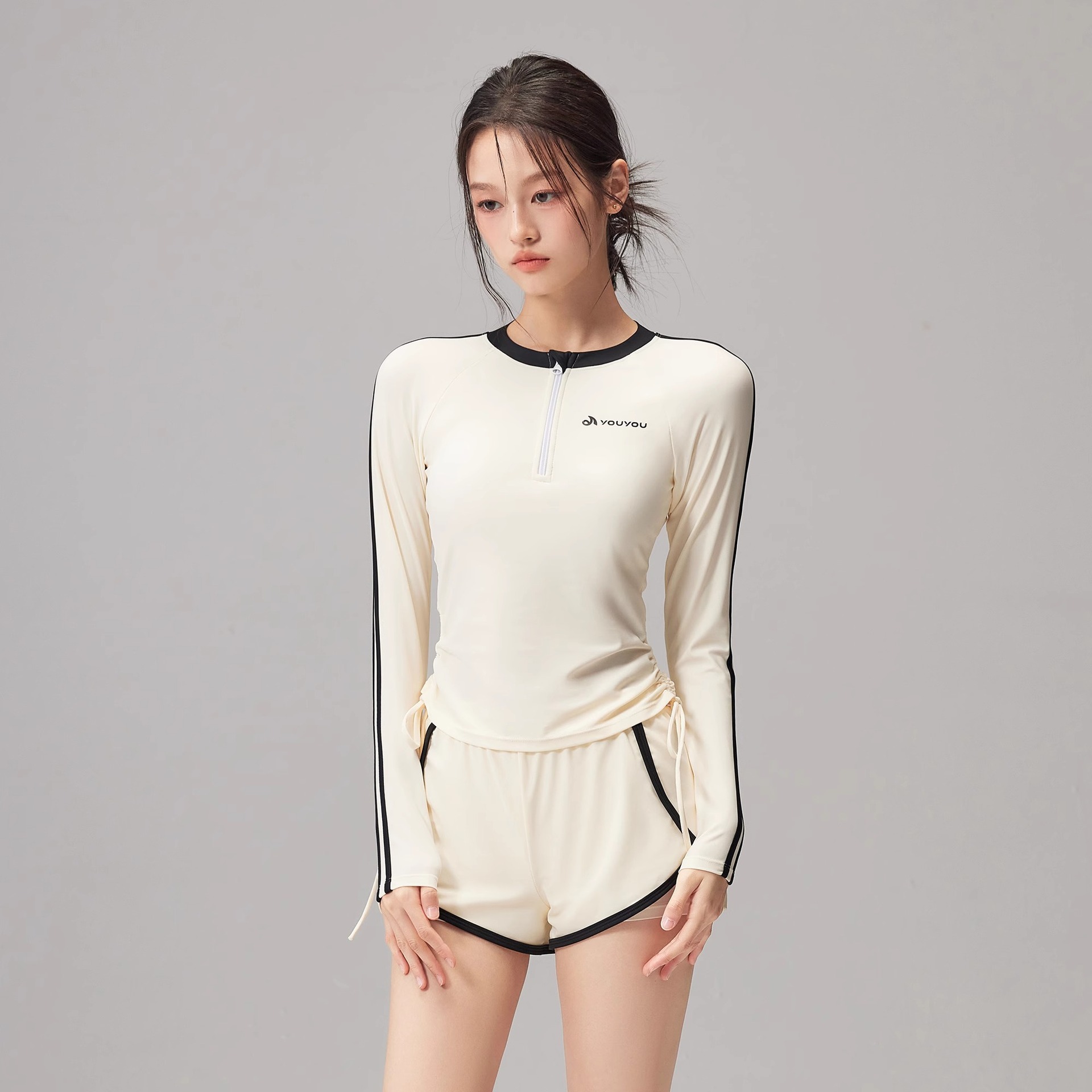 Женский купальник из двух частей, новинка 2025 года, консервативный, утягивающий живот, с длинными рукавами, спортивный бассейн, модный свежий стиль.