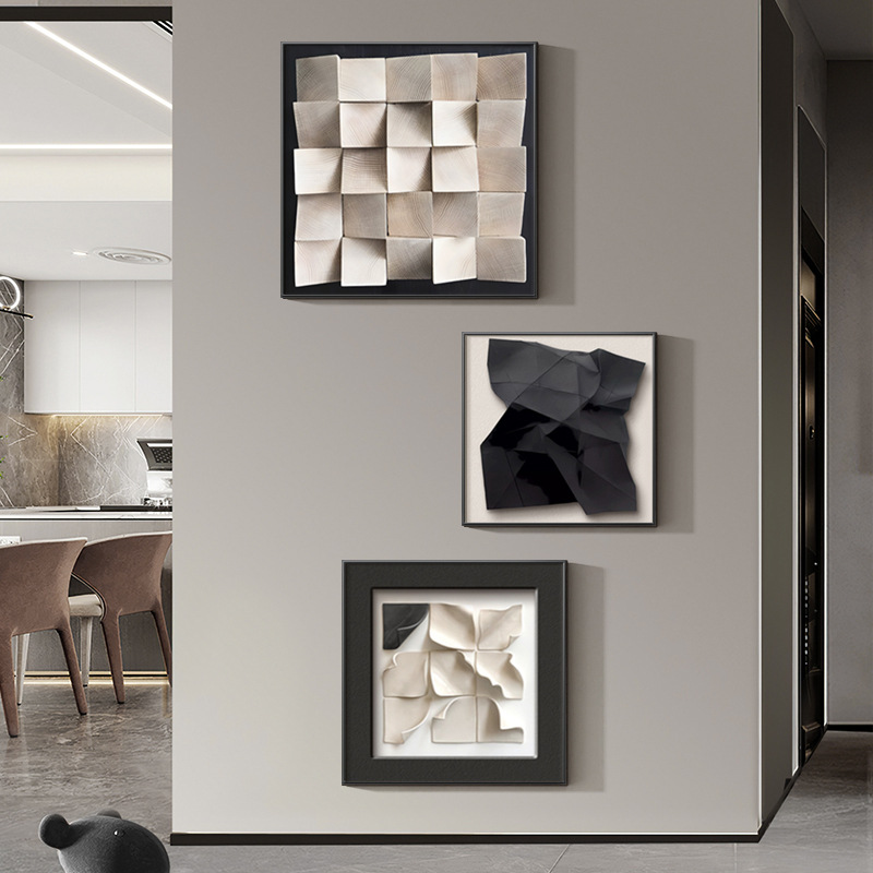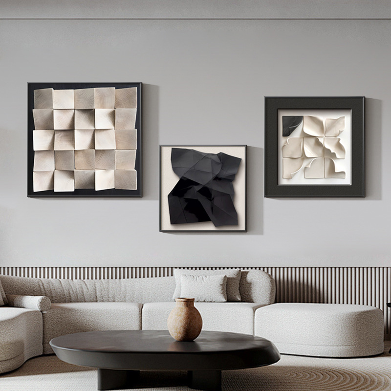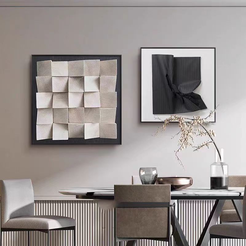 Главная страница > Черно-белая столовая декоративная роспись Современная минималистская гостиная с двумя висячая роспись высокого уровня квадратная геометрическая столовая настенная роспись
