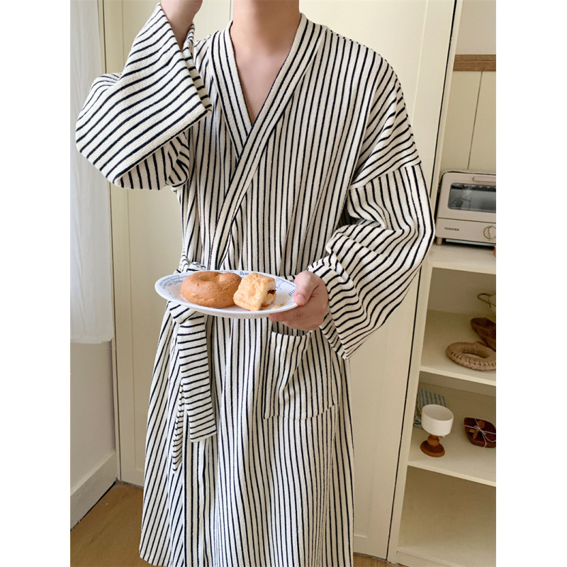 Главная страница > Корейские женщины ins весна, осень и зима новые ночные халаты женский толстый халат длинный простой полосатый домашний халат