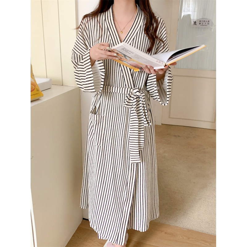 Корейские женщины ins весна, осень и зима новые ночные халаты женский толстый халат длинный простой полосатый домашний халат