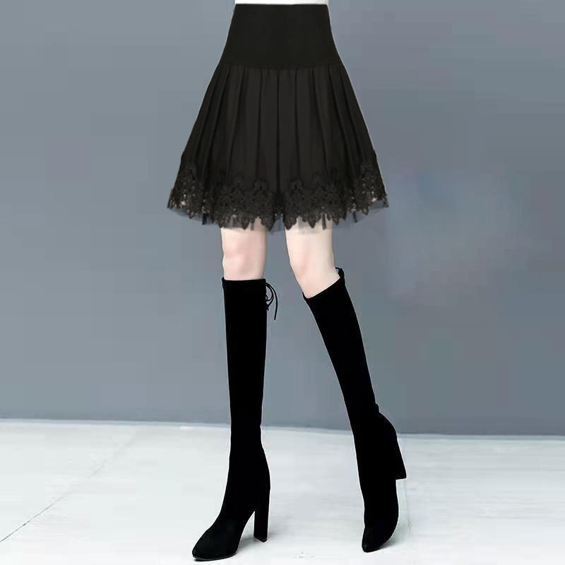 Главная страница > Женская юбка-бутик больших размеров с высокой талией, мохнатая кружевная базовая юбка, эластичная плиссированная юбка А-образной формы с высокой талией