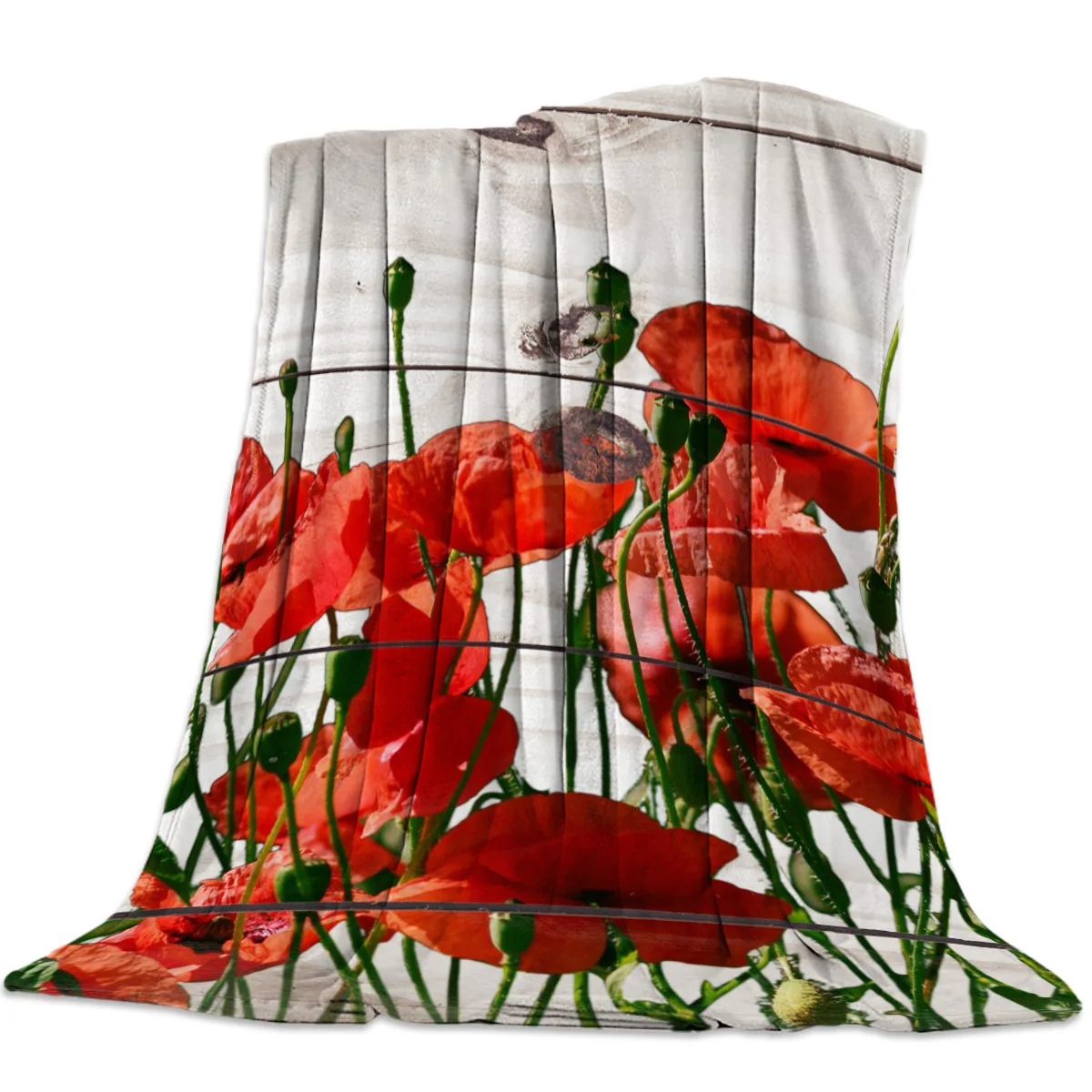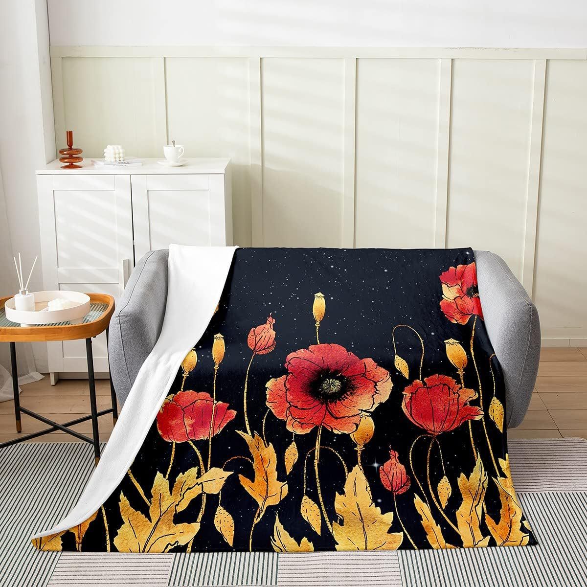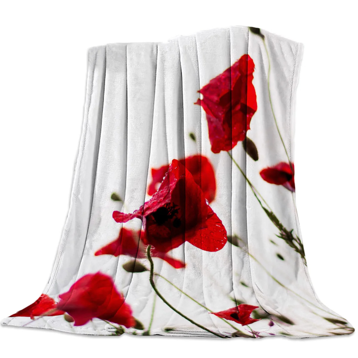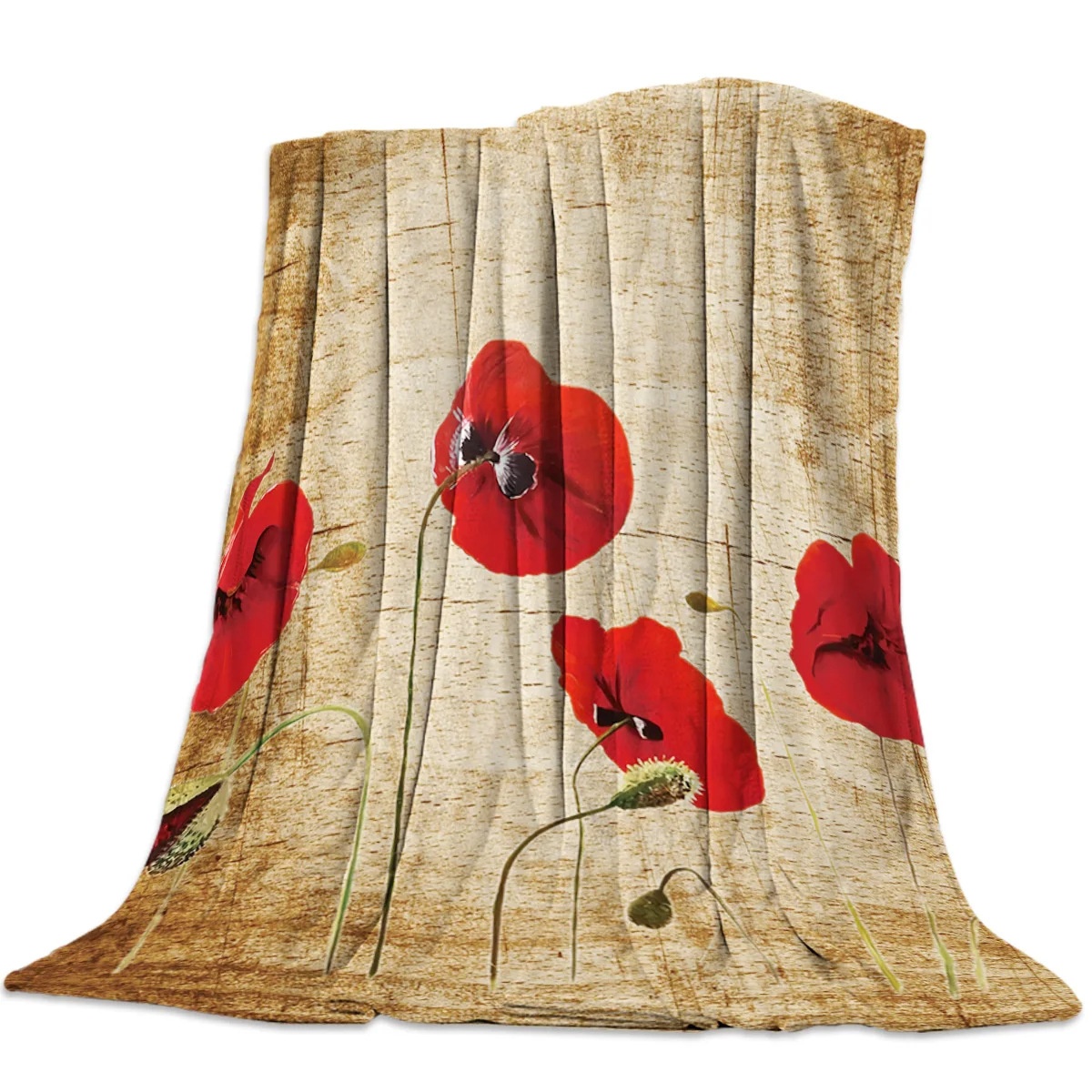 Одеяло с цветком мака, садовое растение, цветочное фланелевое одеяло, стиль фермерского дома, украшение для спальни, кровать, диван, одеяло