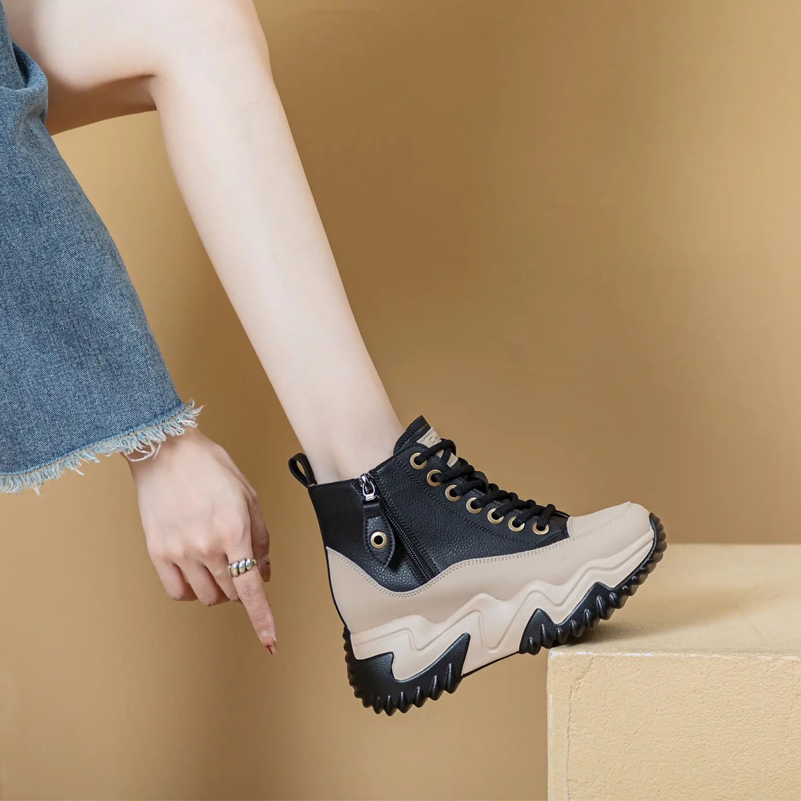 Главная страница > Новые осенние женские кроссовки-ботинки 2025 года на толстой подошве, увеличивающие рост, повседневные, модные, на шнуровке, высокие