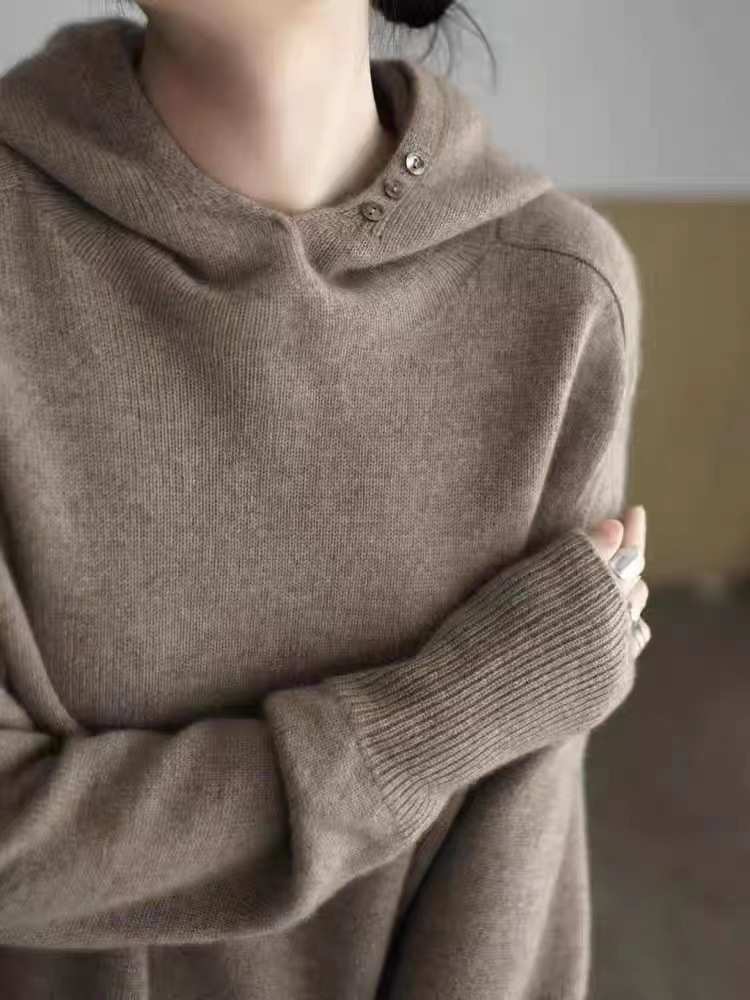 Главная страница > 23 осень и зима Новый шерстяной свитер Женская толстовка с капюшоном с длинным рукавом полноцветный Повседневный пуловер свитер с капюшоном Базовая игла волосы корейского поколения